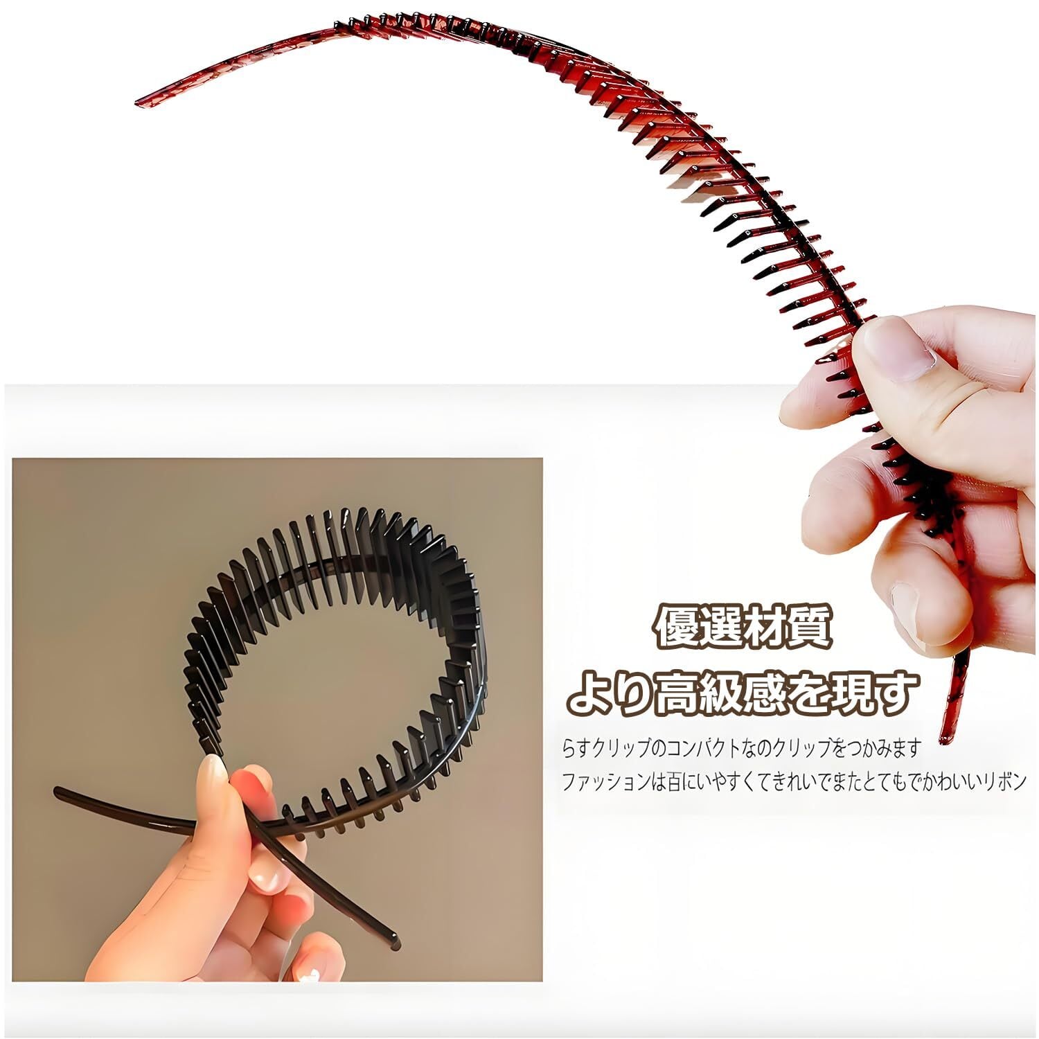 【耐久性と肌ざわり】高品質なアクリル樹脂 を使用しているため、折れにくく 長持ち します。表面はなめらかで、髪の毛 を傷めず、地肌 にもやさしいです。約25g の軽量設計で、付け心地 が軽いです。