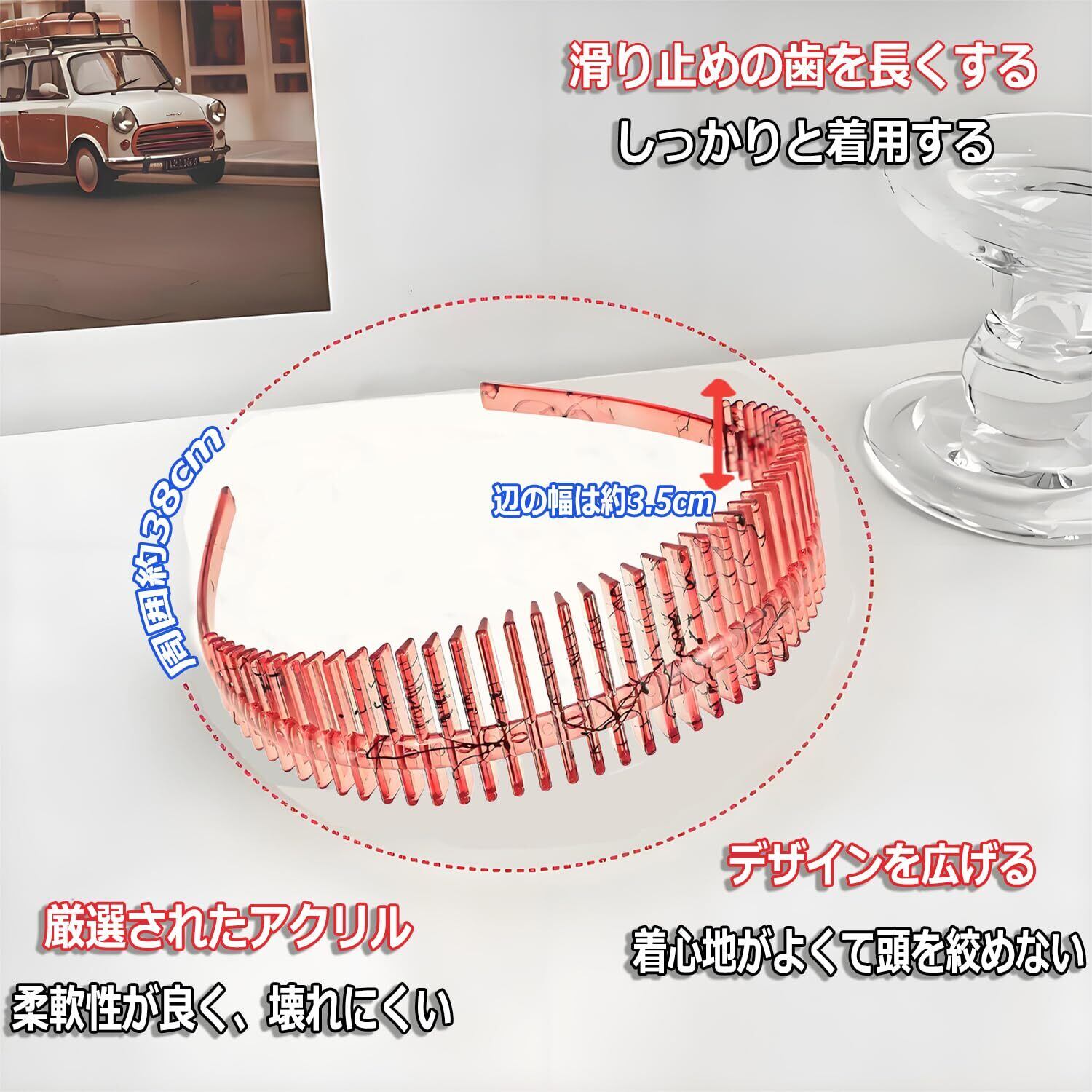 この 広めのヘアバンド は、防滑加工 された 深い歯 が特徴で、すきま風なし にしっかりとフィットします。アクリル樹脂 素材でできており、柔軟性 があり折れにくいです。ポニーテール や 団子頭、まとめ髪 などの いろいろなヘアスタイル に合わせて、きちんと そして おしゃれ にまとめてくれます。洗顔 や メイク 時、在宅ワーク 中でも、髪の毛 が邪魔になることなく、快適 で 便利 です.