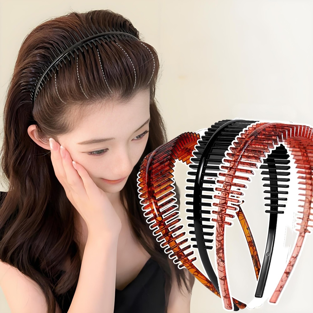 【防滑設計としっかり固定】広めのバンド と 深めのコーム歯 が特徴の ヘアバンド です。防滑加工 により、すきま風なし で しっかりホールド。激しい動きでもずれにくく、ポニーテール や 団子頭 などの ヘアスタイル を美しくキープします。