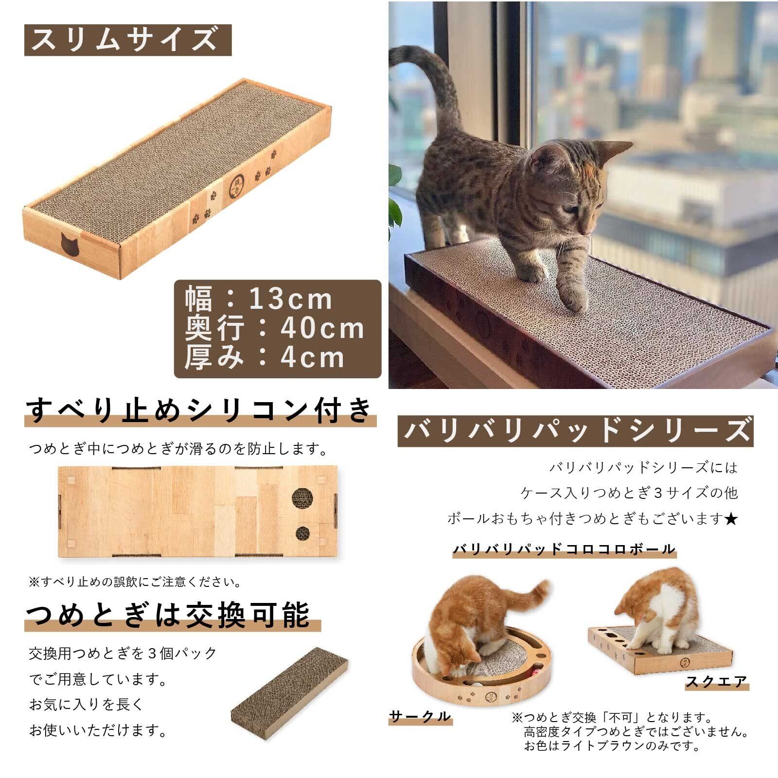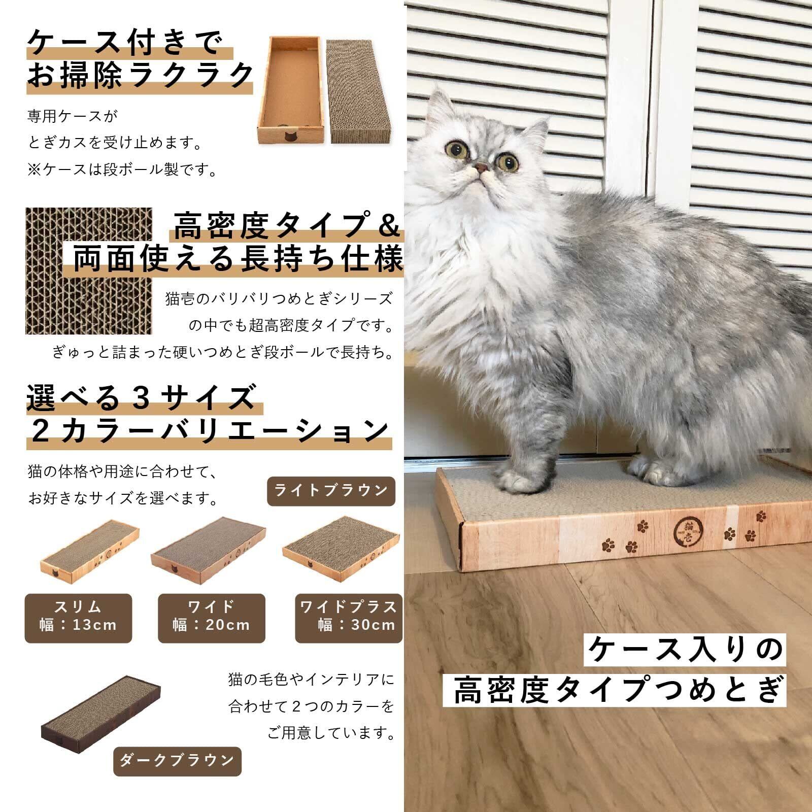 ケース入りでお掃除しやすい。高密度タイプのつめとぎです。すべり止め付き。