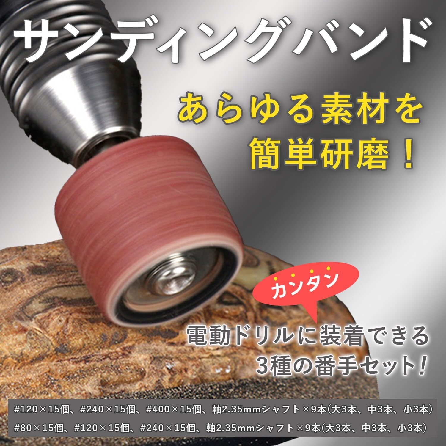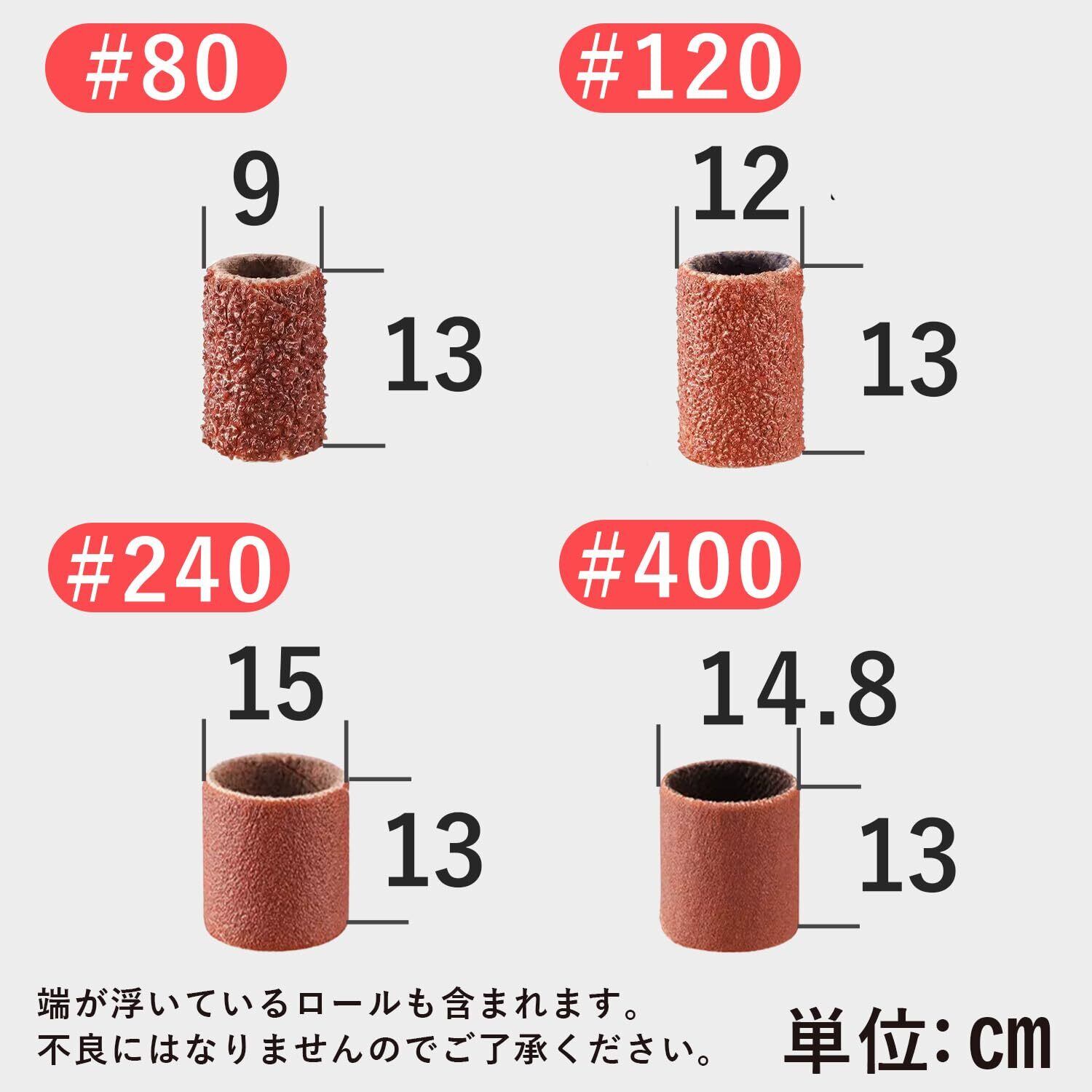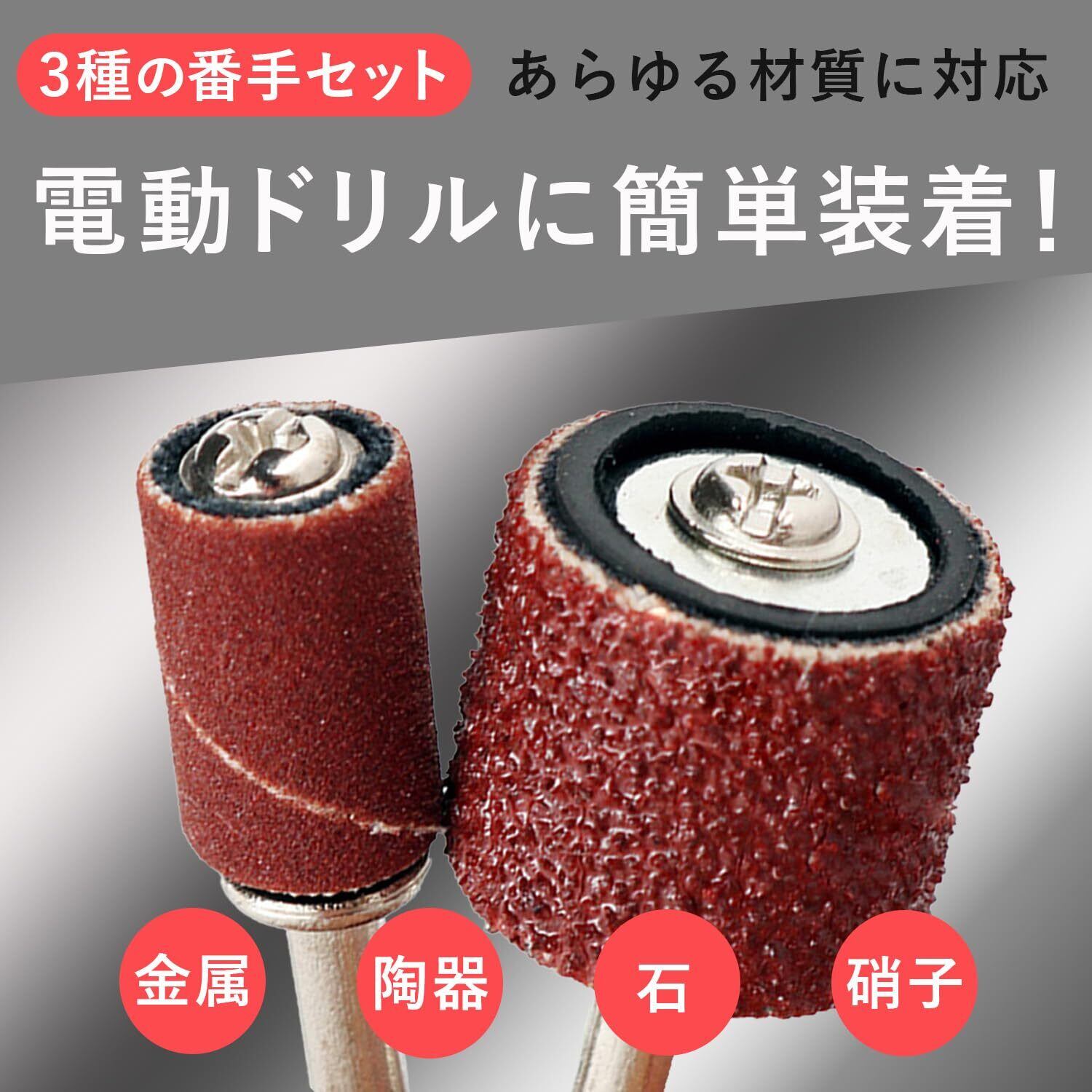 shymie サンディング バンド ドラム 研磨 サンドペーパー ルーター ヤスリ 80 120 240 番手 各15個 軸 2.35mm 各3本
