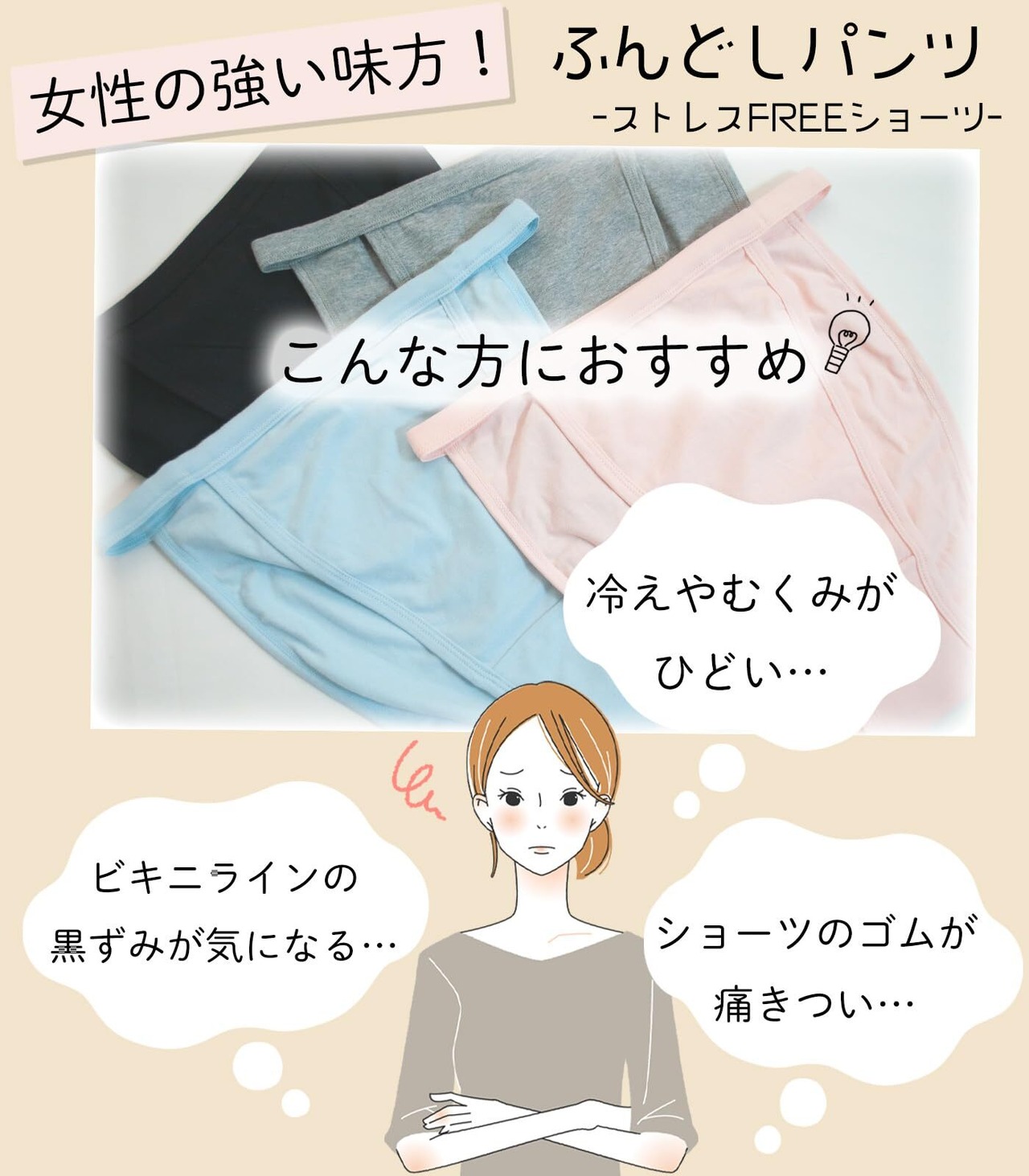 【特徴】 ふんどしパンツ / ストレスフリーショーツ / しめつけない / 綿混素材 / 足口開放 / 伸縮性あり / ゆったり / ヨコ伸び / やわらか