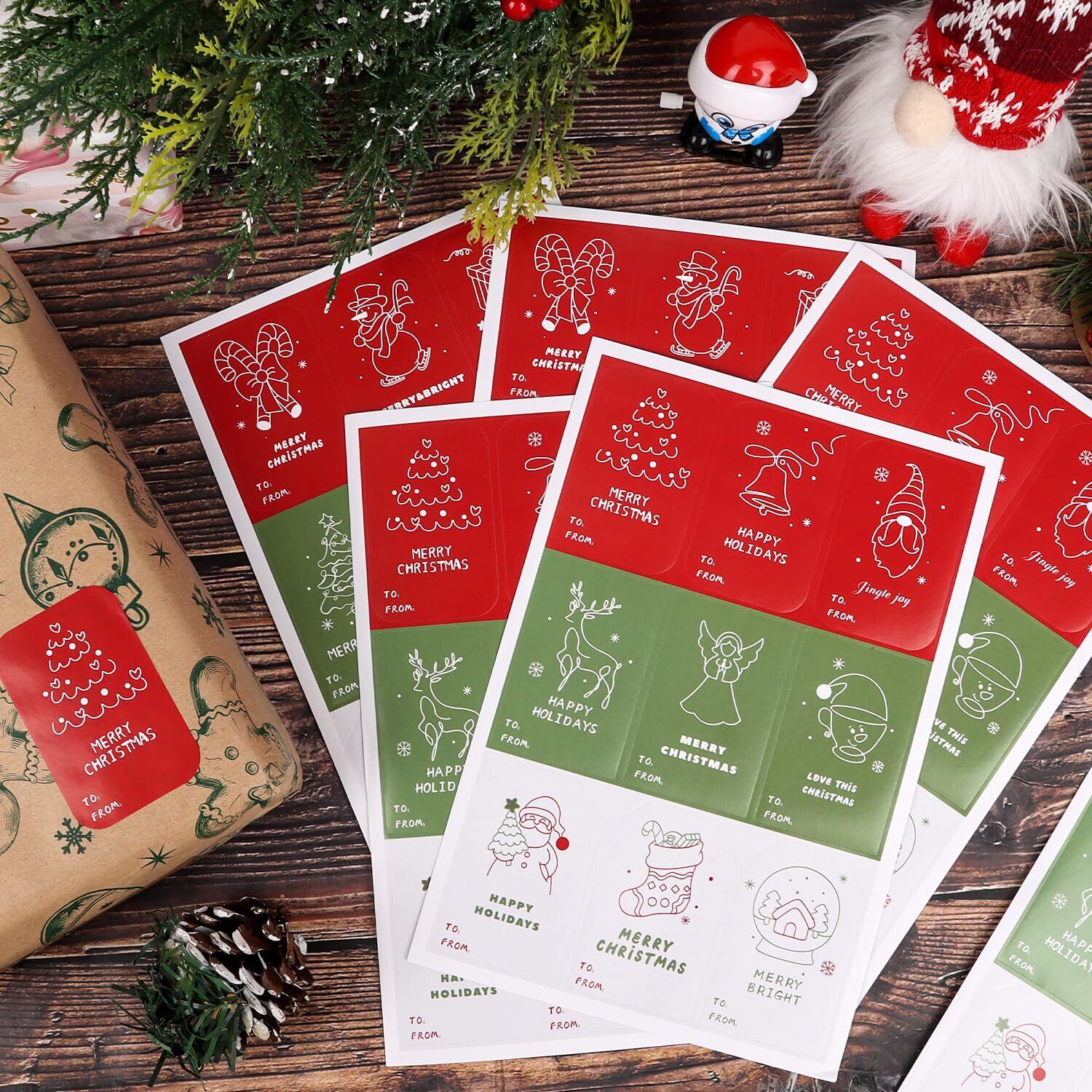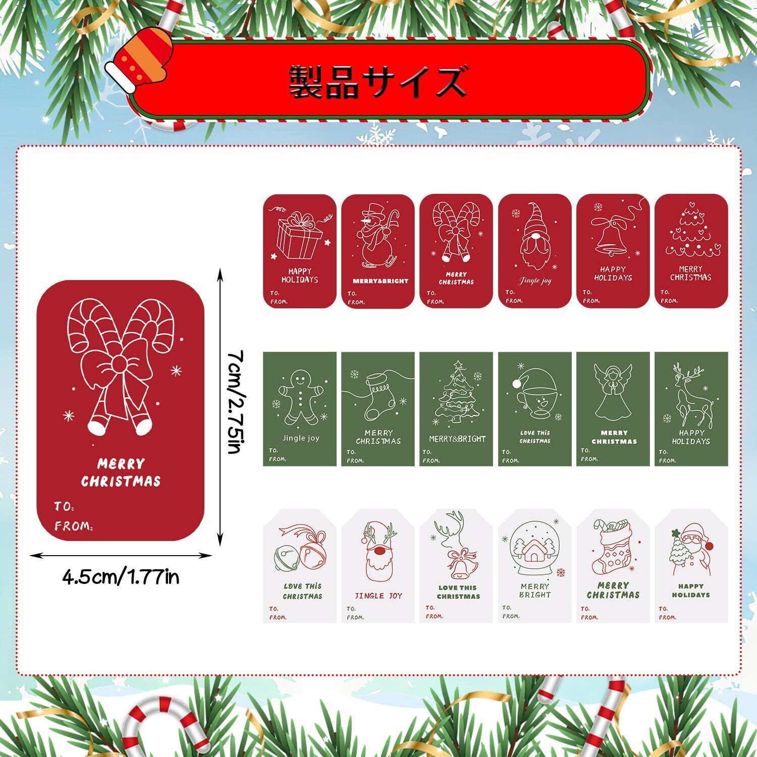 デザイン:サンタ、トナカイ、雪だるま等の18種類の絵柄があり、プレゼントに貼るのはいい装飾で、クリスマスの雰囲気をさらに盛り上げることができます。