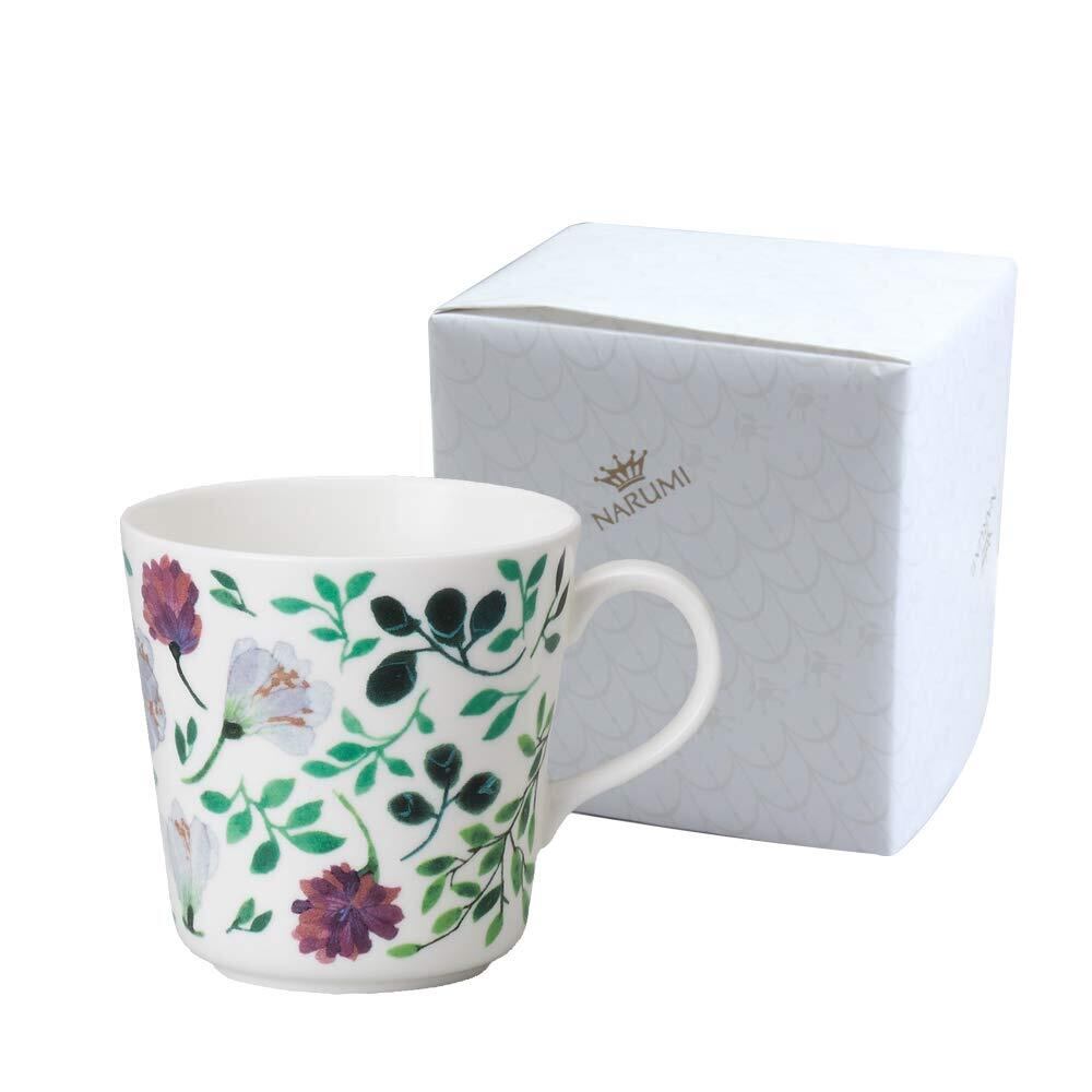NARUMI(ナルミ) マグカップ アンナ・エミリア グランドマザーズブーケ 340cc グリーン 草花 花柄 クローバー クロッカス かわいい 大きめ 母の日 プレゼント 電子レンジ温め 食洗機対応 ギフト箱入り ラッピング済 51857-2923PAZ