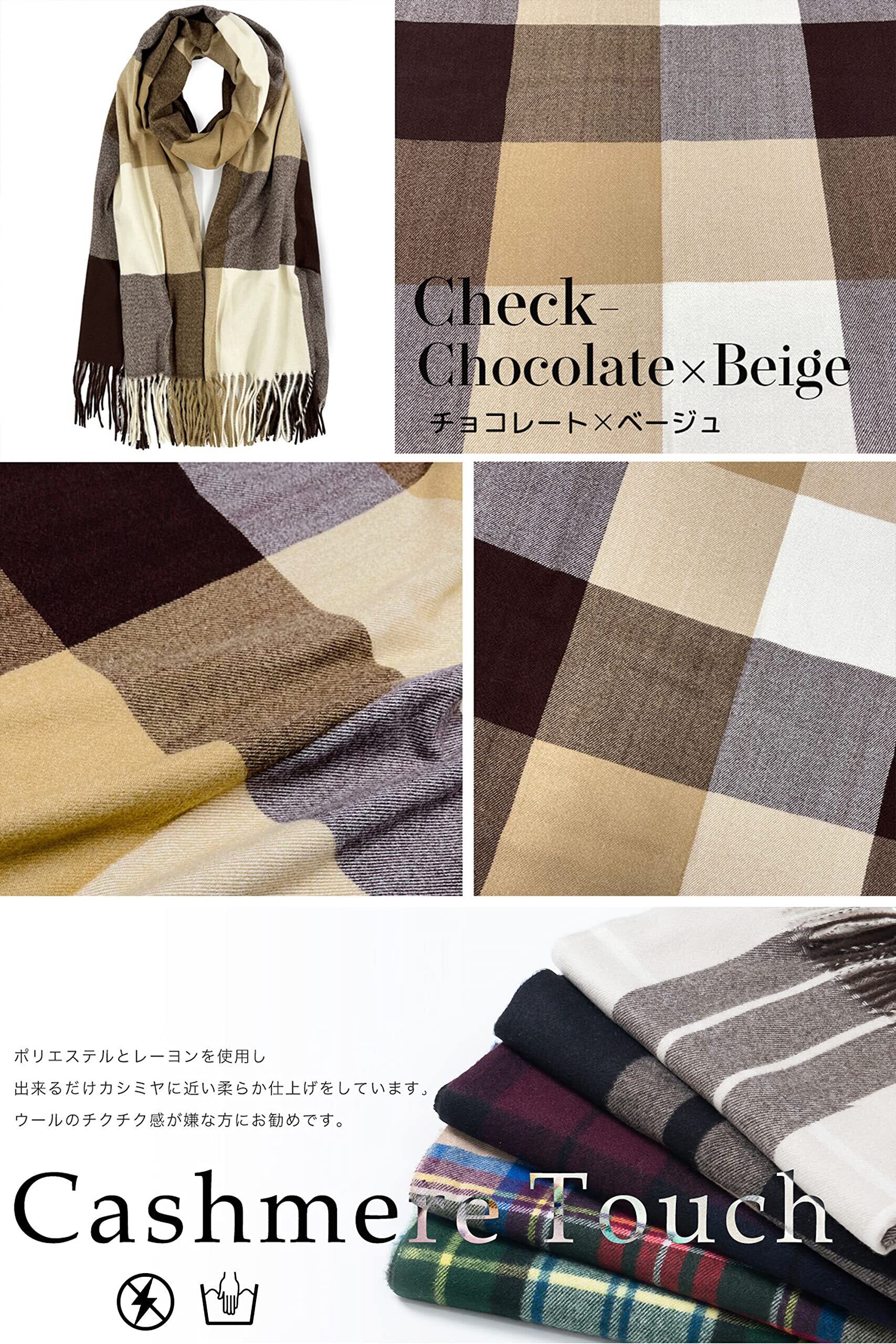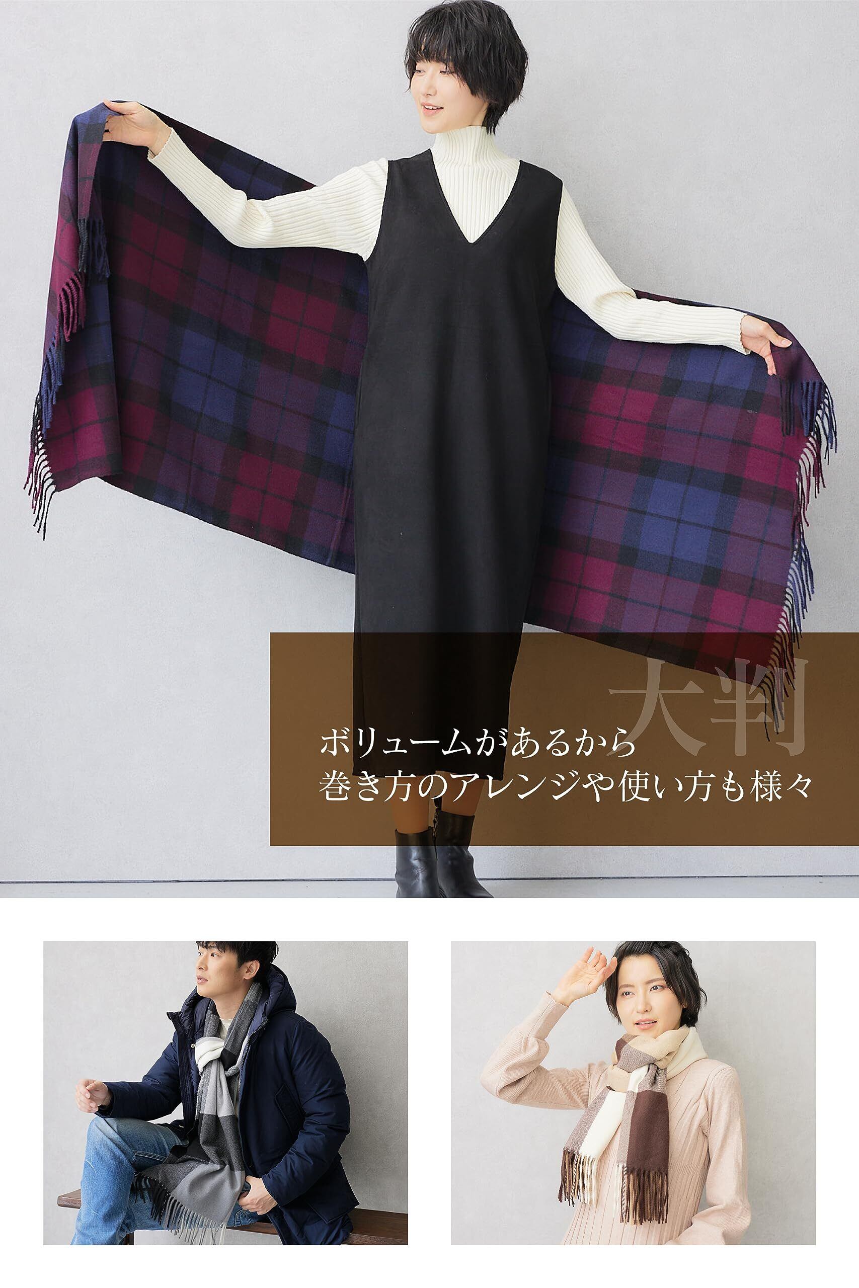 カシミヤタッチ大判ストール【サイズ】200cm×70cm(フリンジ込み) 【カラー/柄】無地4色とチェック柄5色(計9パターン) 厳選した素材で編み上げた、大判のカシミヤタッチ大判マフラーです。静電気防止加工が施されており、手洗いOK。レディース・メンズ共用なので、プレゼントにも最適です。