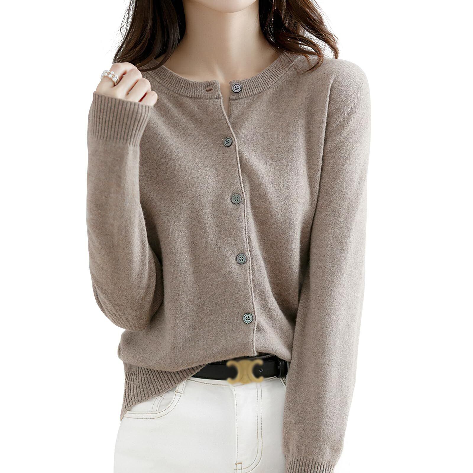 【細見えシルエット実現】ラウンドネックのレディース カーディガンが登場。丸みのあるラインがフェイスラインをやさしく包み込み、柔らかな印象に。ニットカーデは裾・袖口・襟元にリブ編みを施し、全体を引き締めてすっきりとした。微ゆったりとしたシルエットとドレープ性が、体型をきれいにカバーし、自然に細見え効果を叶えます。