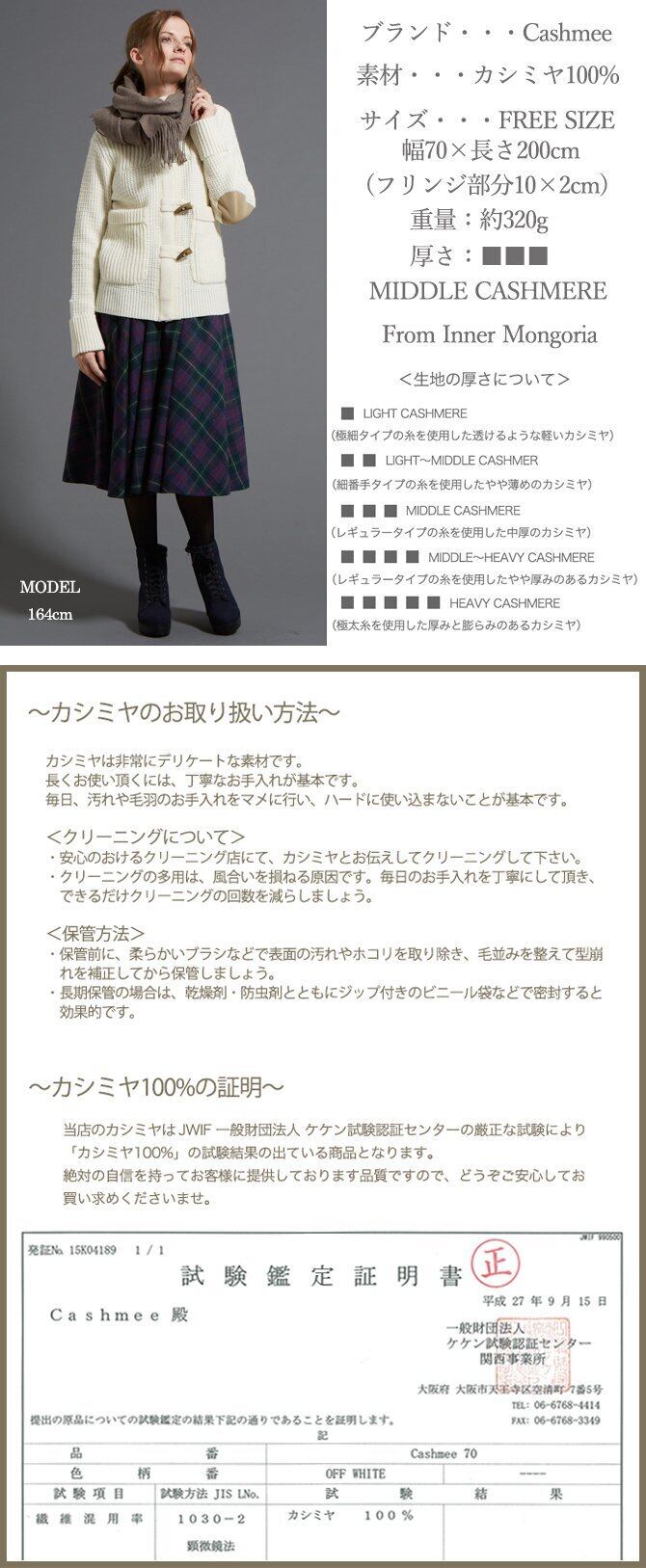 最高級内モンゴル産カシミヤ100%使用