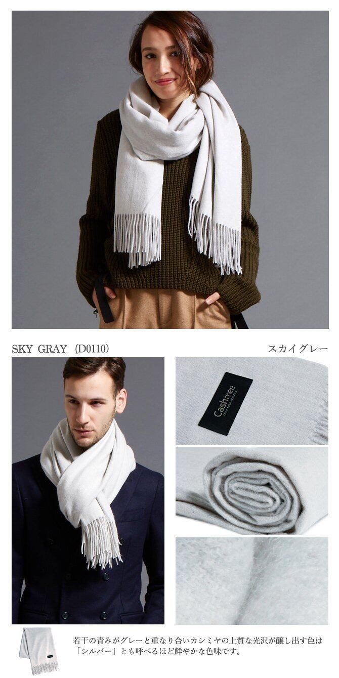 Cashmee 最高級 カシミヤ100% ベーシックウェーブ ストール「soleil」 大判 無地 全18色 レディース メンズ