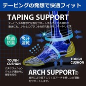 不規則な動きにも かかとのグラつきを抑える、足首テーピング機能