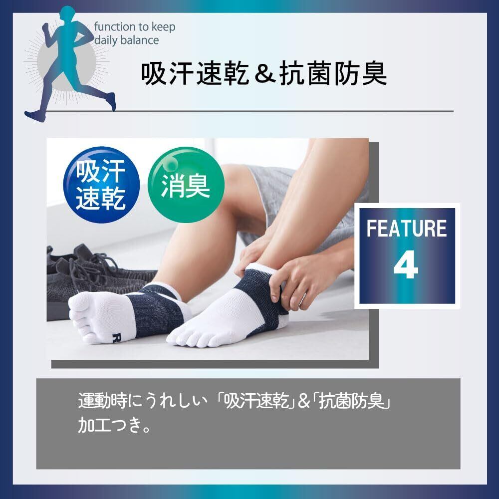 つま先とかかとは丈夫なクッションパイルで、運動時の衝撃を吸収