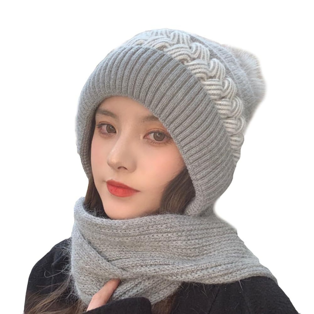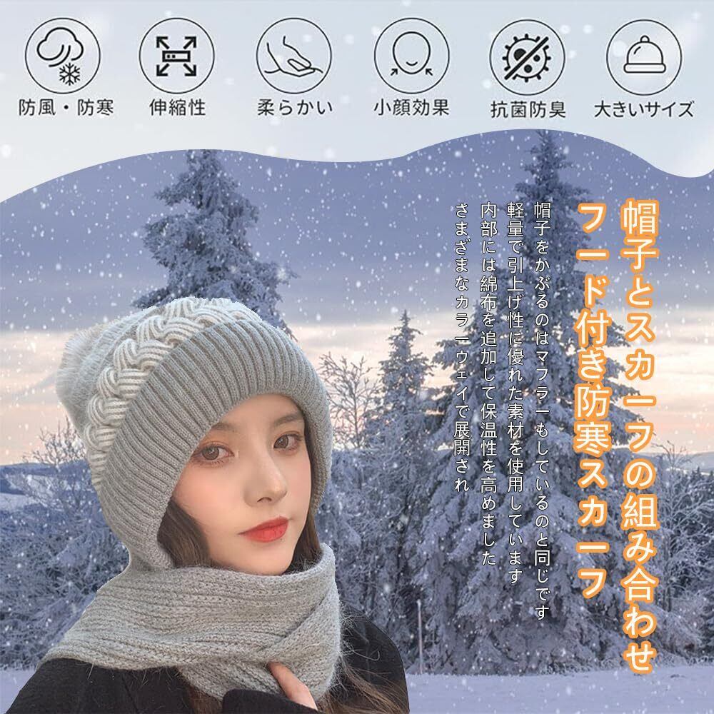 [MIDIRO] マフラー帽です レディース ニット帽 秋冬 防寒防風 二重保温です 柔らかい 伸縮性 マフラーです 締め付け感ゼロ 小顔効果 通気 帽子 ニット帽子 ニットキャップ 無地 軽量