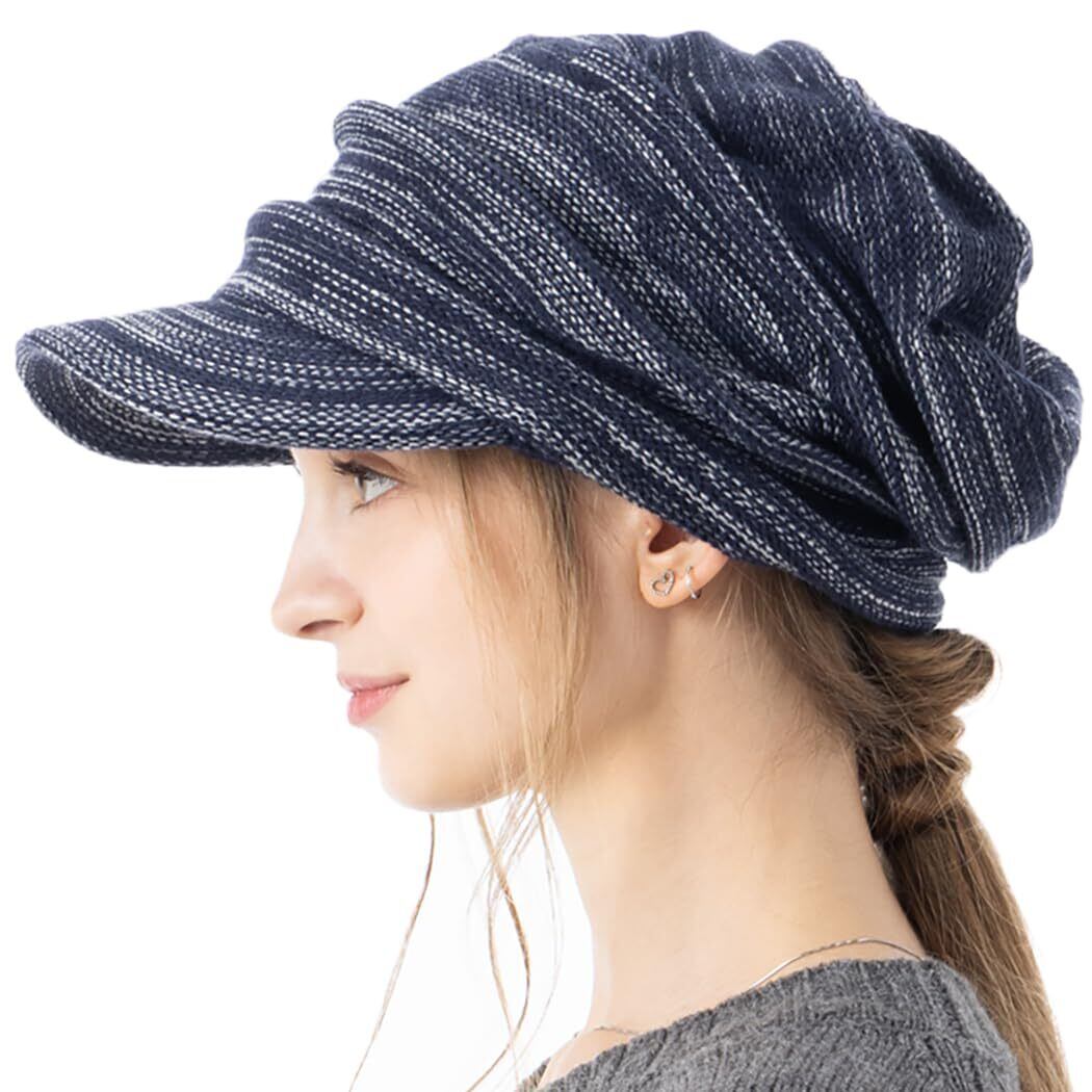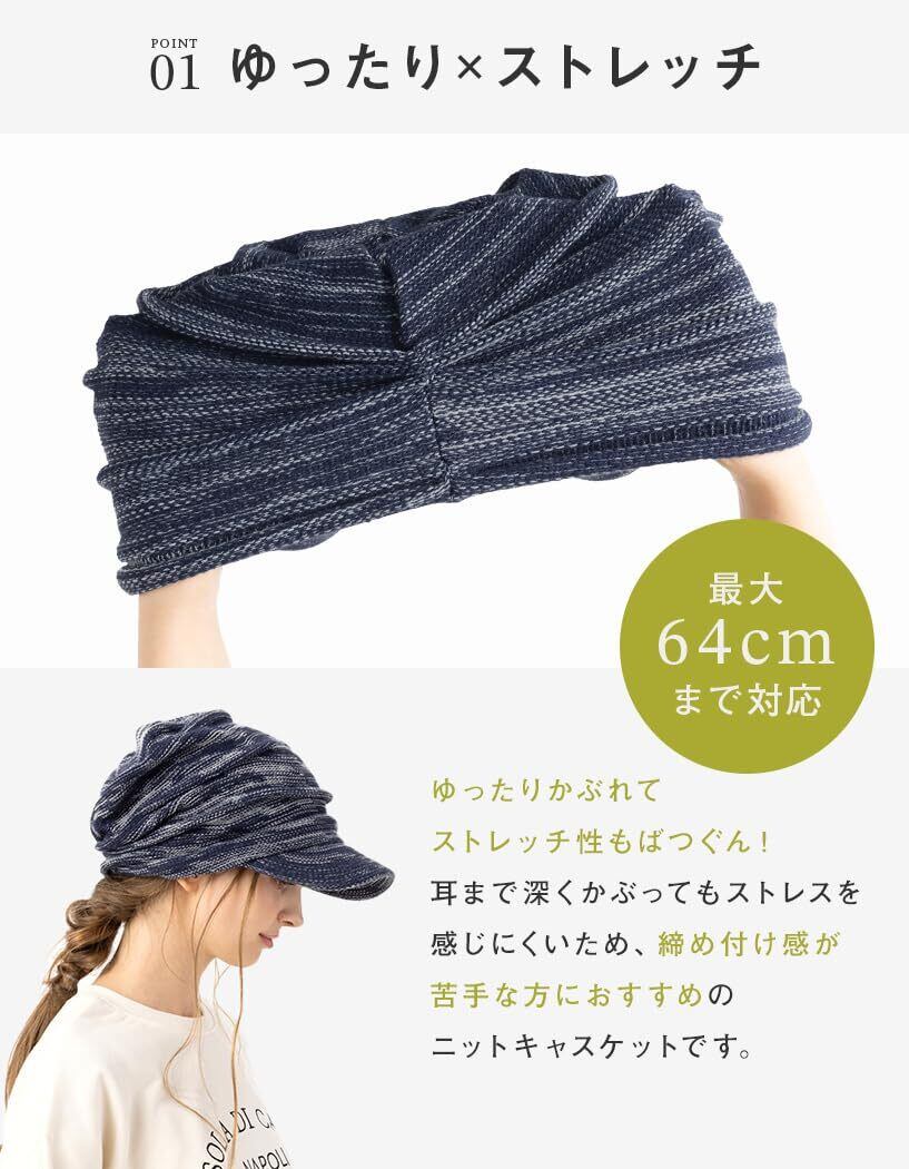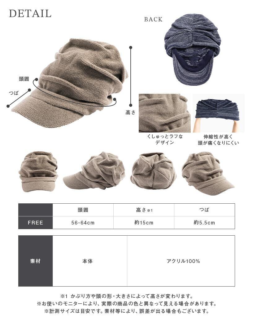 [Loo&c] 帽子 つば付き ニット帽 リンクルニットキャスケット 大きいサイズ レディース ゆったりサイズ ワッチ ニットキャップ メンズ 防寒 耳あて