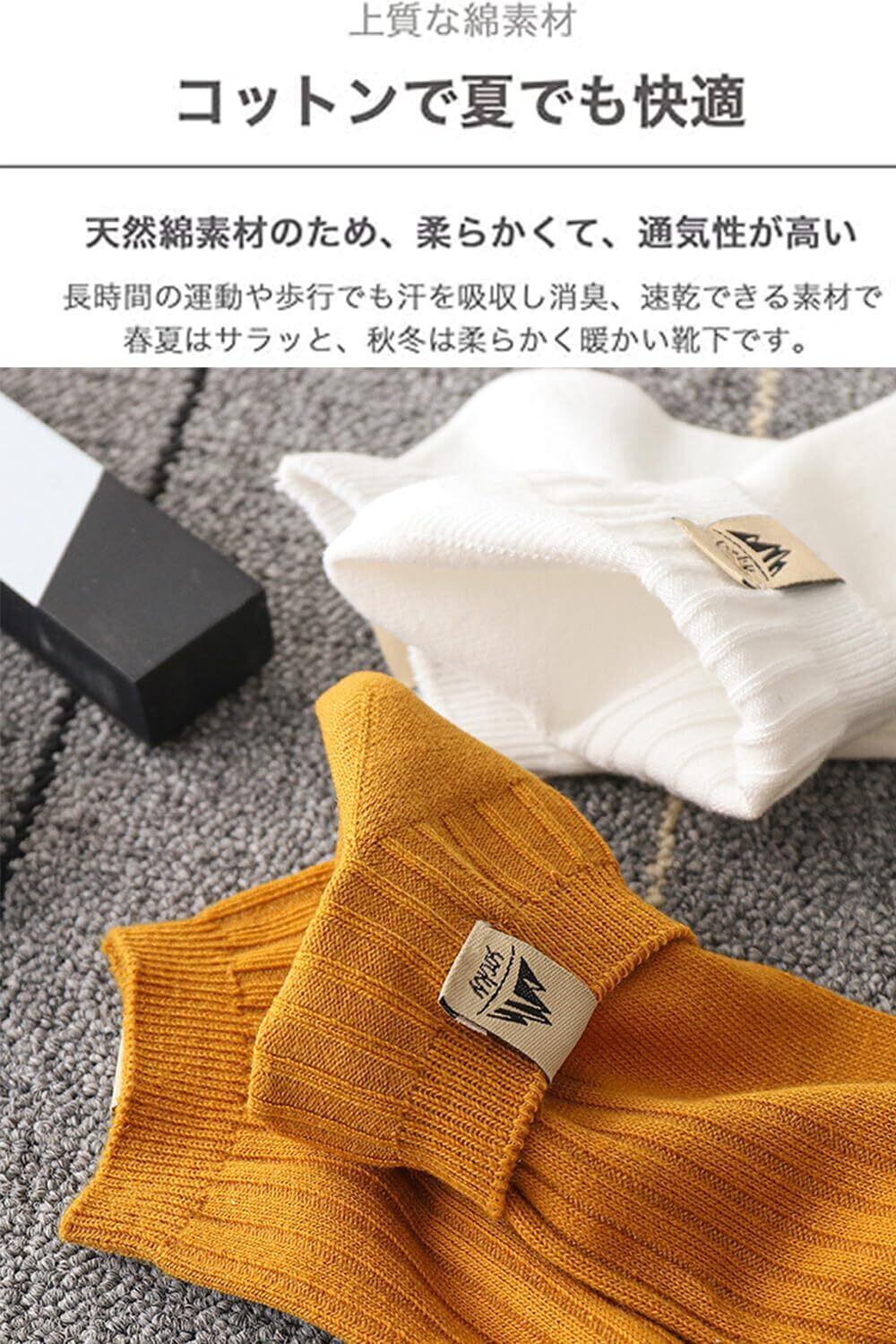 【ソフトな履き心地】速乾性とストレッチ性に優れたコットン素材で作られており、ソフトながらもしっかりとした 着心地を実現します。更に、汗をかきやすい足から水分を素早く吸収し、外部に放出することで、ランナーの 足をより快適でドライな状態に保ってくれ、スポーツシーンでも活躍します。