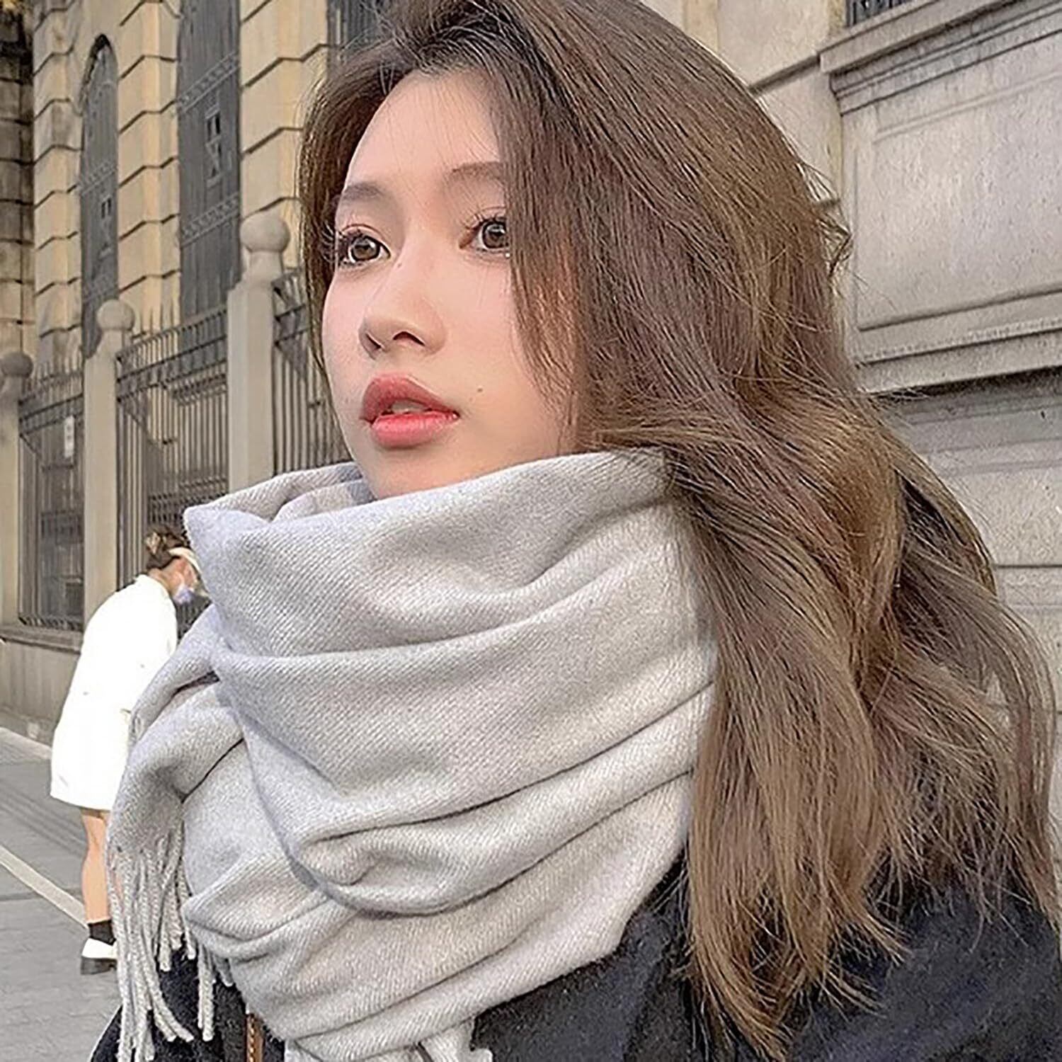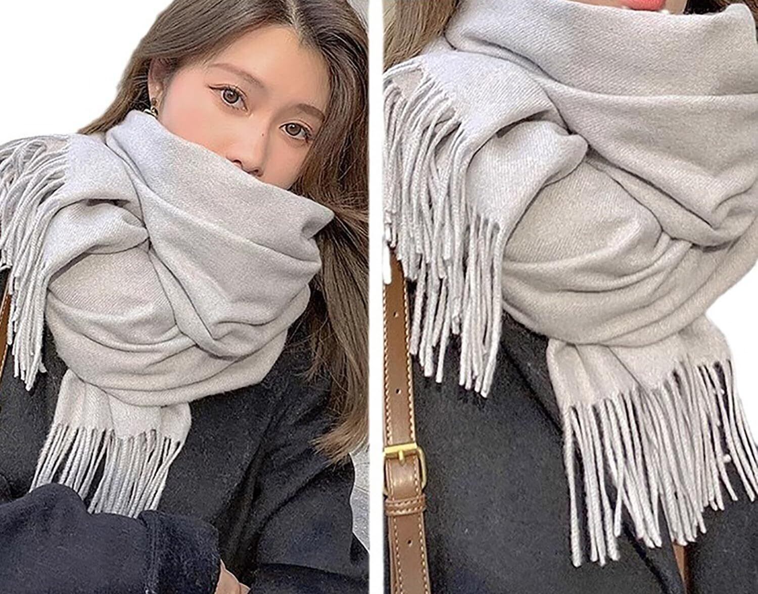 とても温かく、どんなスタイルのコーディネートも、巻くだけでキレイなアクセントになります