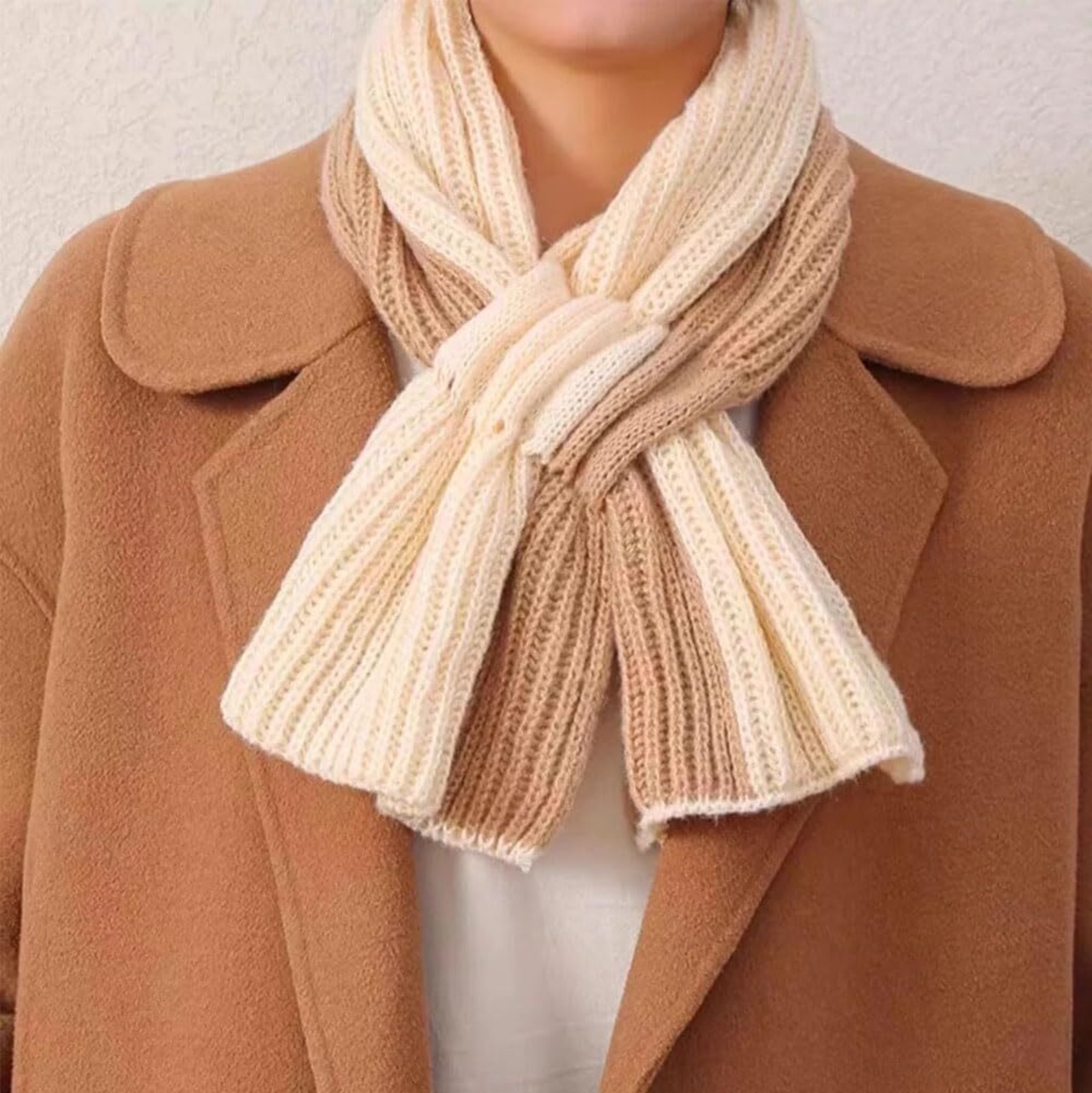 使いやすい:ニットマフラー スカーフのシルエットはシンプルで、若々しい感じを醸し出し、とてもファッショナブルでかわいいですが、着脱が簡単で、首の周りに優しく巻き、穴に挿入するだけで使用でき、結び目を固定する必要はありません。