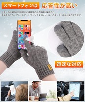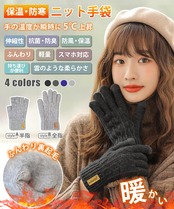 【寒さを感じない魔法の手袋 】:保温ニット手袋をすると、瞬時に温度が5℃上がり、とても暖かい!裏面には柔らかい裏起毛、熱を閉じ込めやすく、肌に優しく快適な着心地を実現している防寒手袋です。ふわふわの裏起毛が指先まであり、手全体から指先までしっかり温めてくれます。防寒手袋、強化された袖口、伸縮性よく、締め付けません。冷たい風の侵入を防止する同時に、動きで簡単に外れません、 ふわふわで手に着けた瞬間暖かく実感できます。 快適な使用心地で、寒い冬に大切のお手を守ります。防寒手袋としての抜群な保温性はもちろん、汗をかいても蒸れにくい吸湿性や高い耐久性に優れています。寒い冬に欠かせない暖かい手袋!