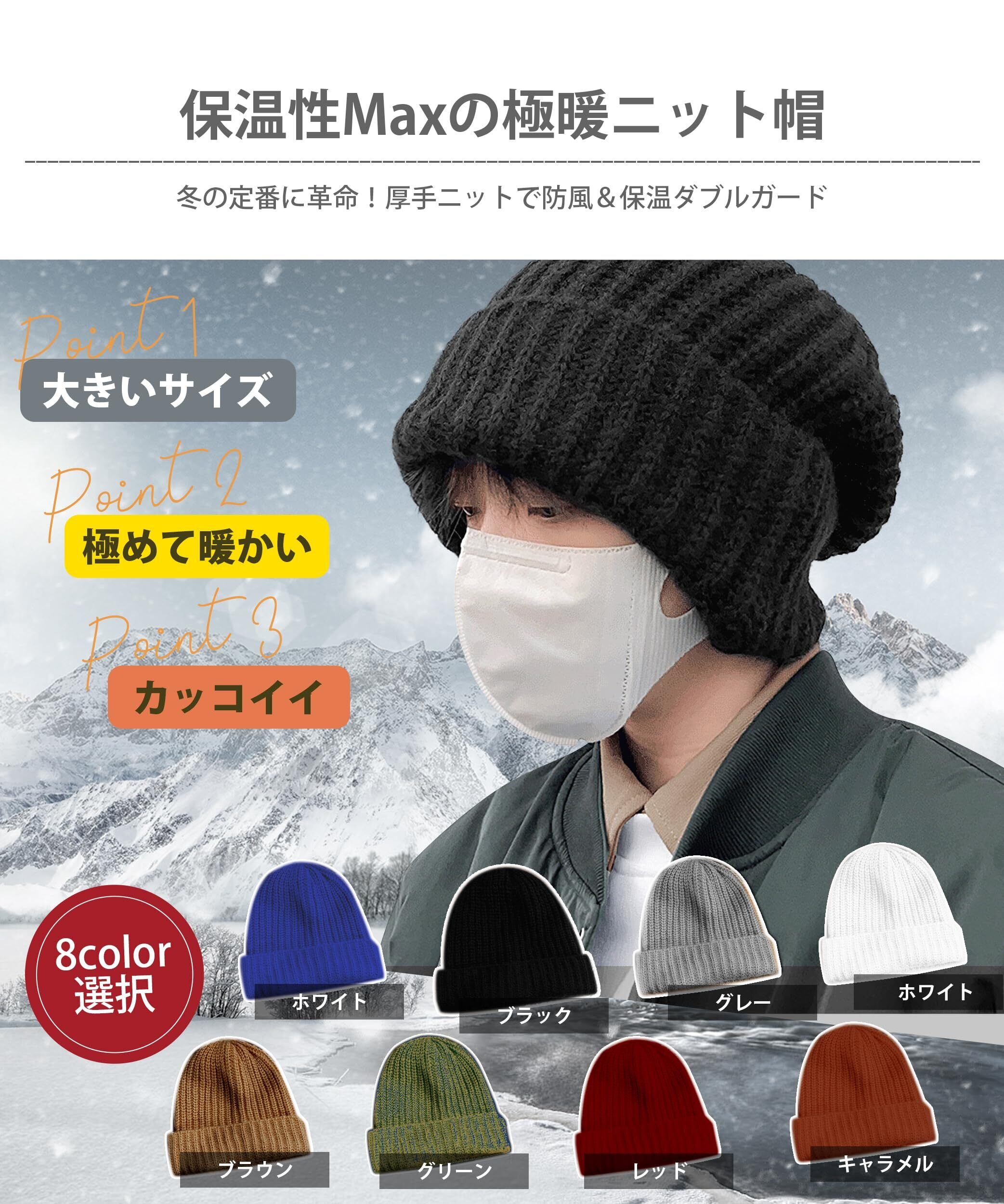 [MOWO] 帽子 メンズ ニット帽 冬 【大きいサイズ・保温性Max・ファッション感】 防寒帽子 ビーニー ニットキャップ 保温 防風 厚手 暖かい 小顔効果 トレッチ性 柔らかい おしゃれ 男女兼用 街ブラ・スポーツ・通勤通学・旅行 54-68cm