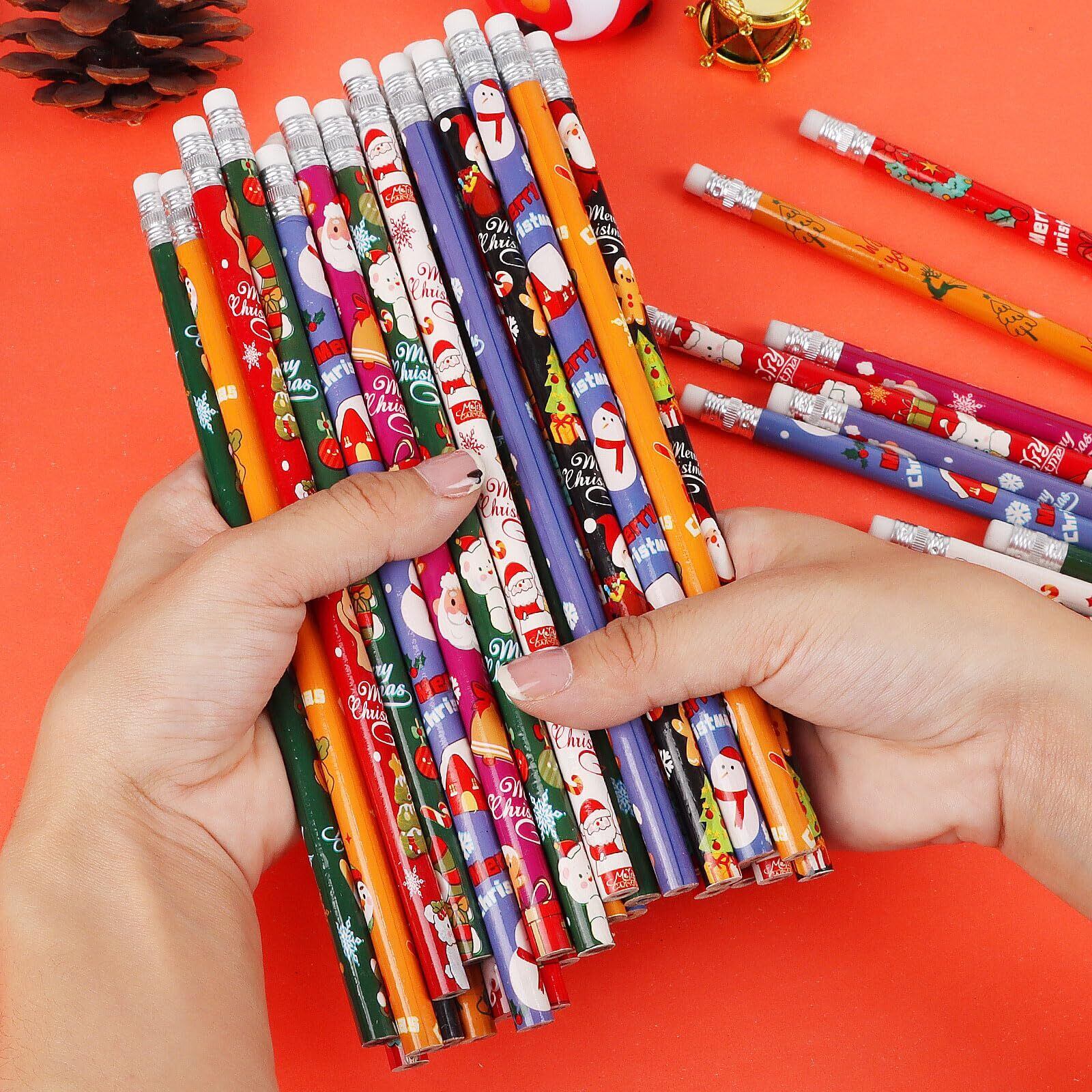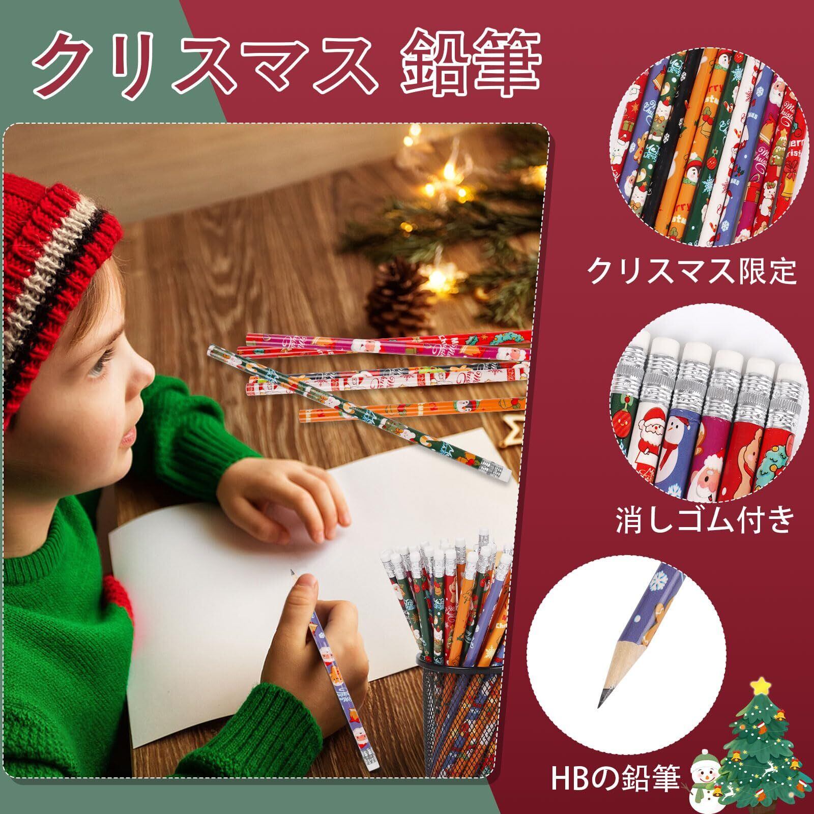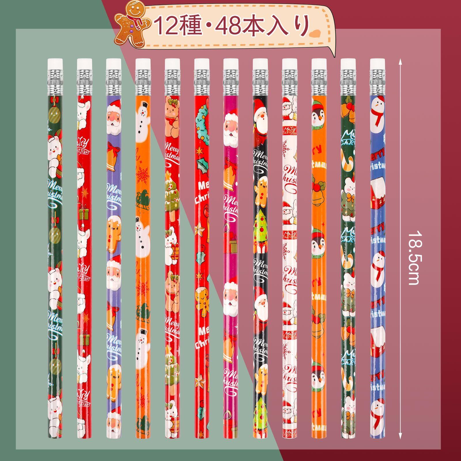 【2022最新】FINGOOO クリスマス 景品 鉛筆 えんぴつ 12種・48本入 教師用 ご褒美 可愛い HB 文房具 筆記具 プレゼント ギフト 学園祭 縁日 イベント お祭り (クリスマスA)