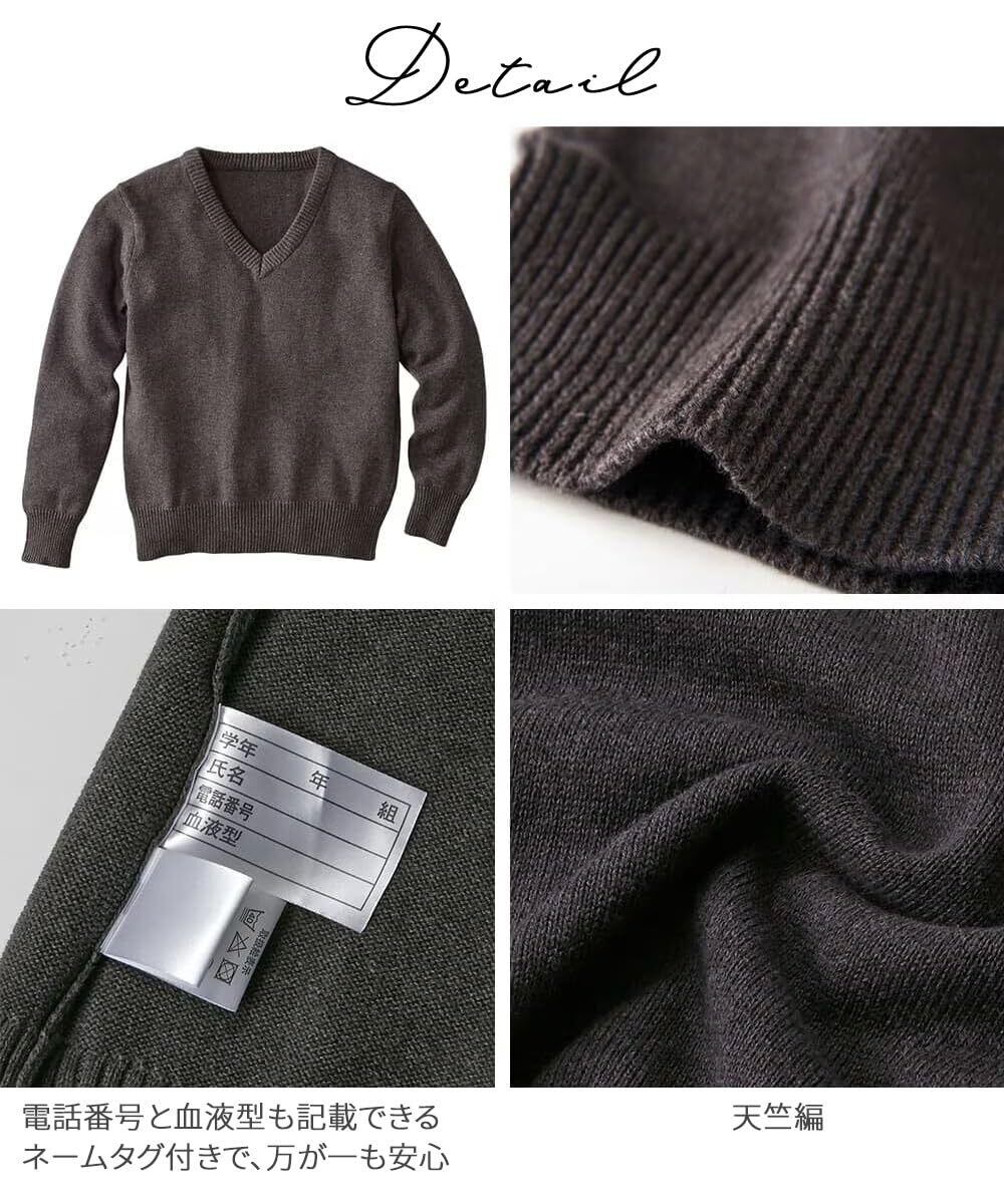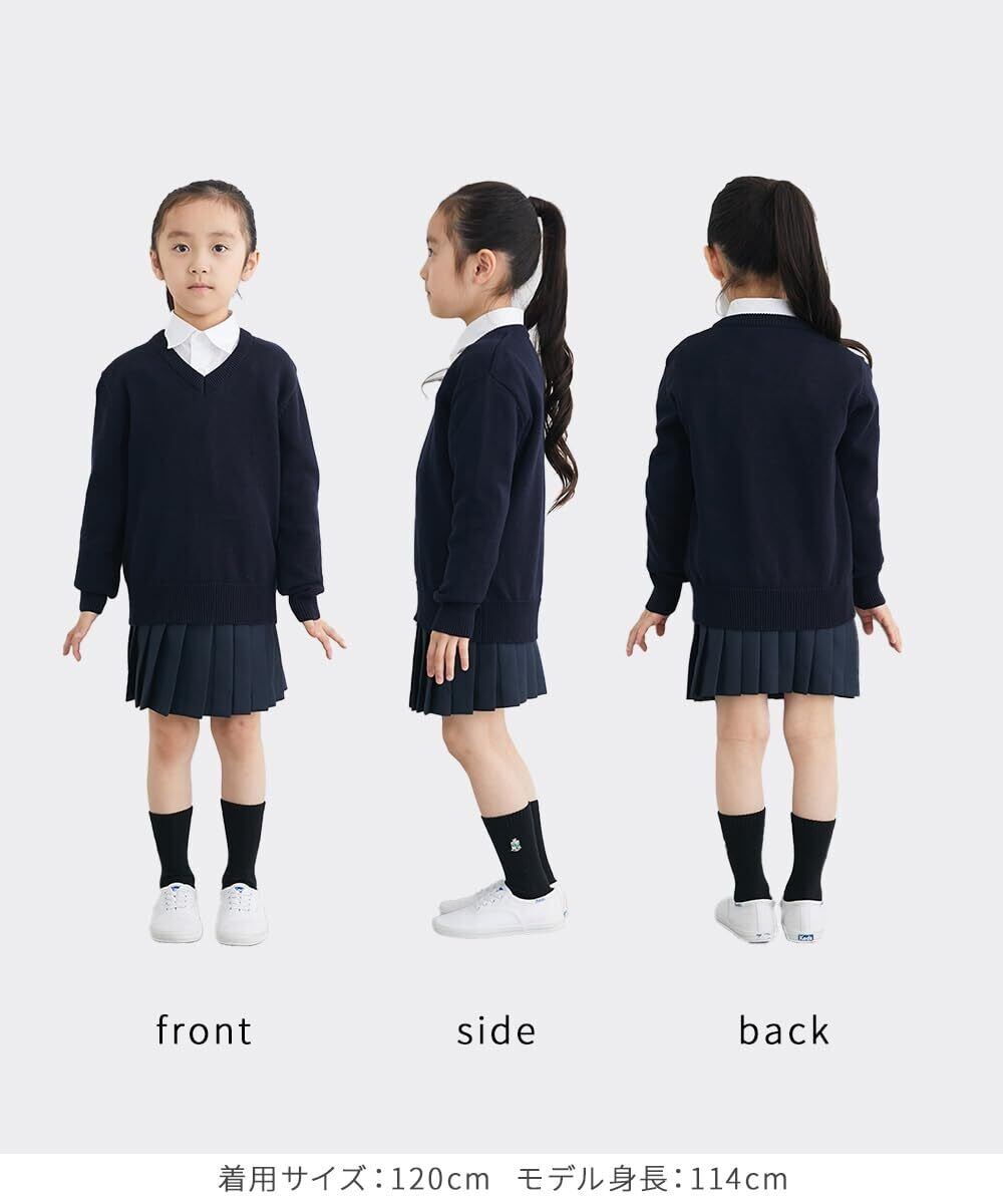 シンプルなVネックデザインは、スクールスタイルからフォーマルまで、幅広いシーンで活躍します。