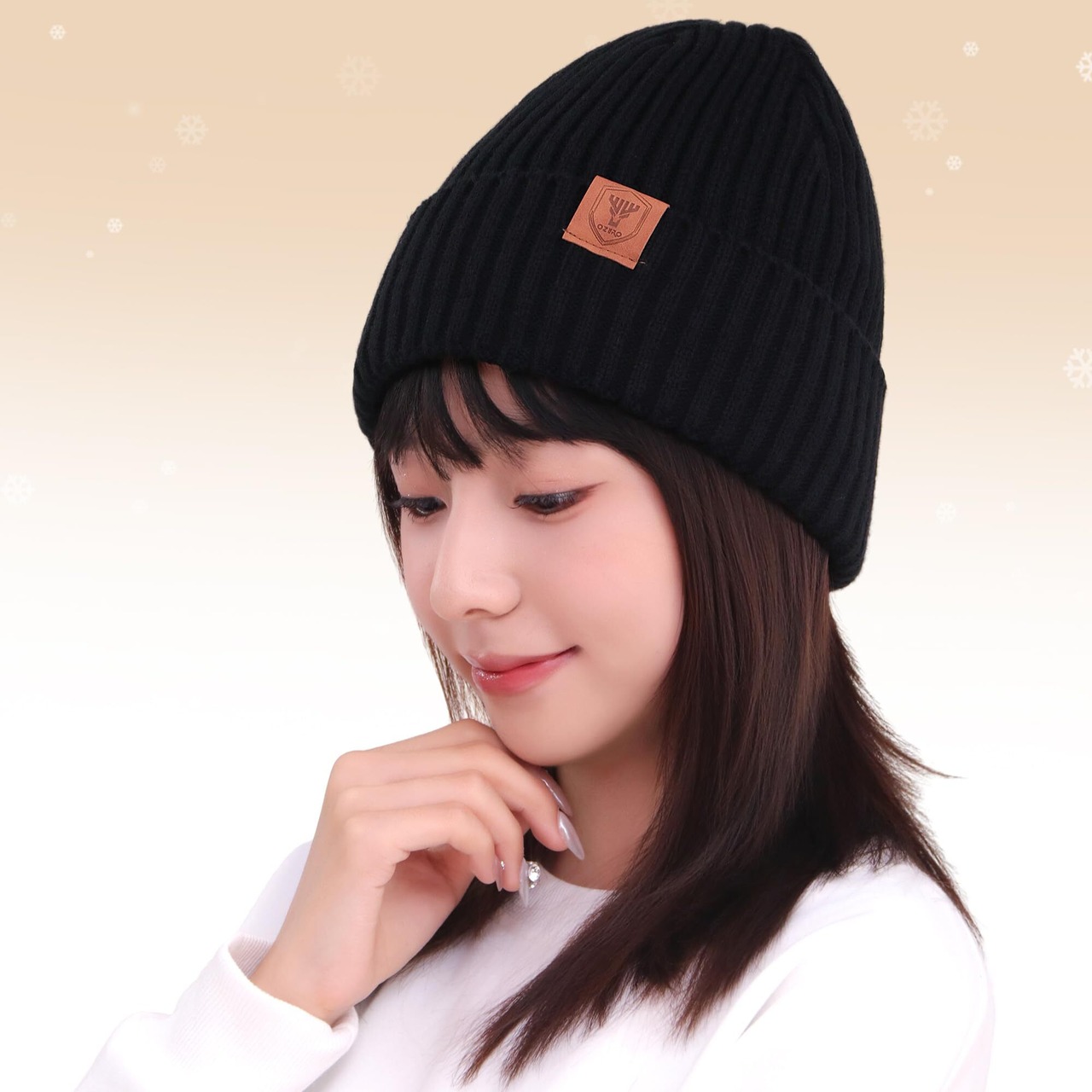 [OZERO] 【高編成ニット+裏起毛】 ニット帽 防寒 地厚 冬 男女兼用 フリーサイズ 防寒帽子 保温・防風・通気・弾力 スポーツ アウトドア ブラック/グレー 細糸編み/太糸編み (01/02)