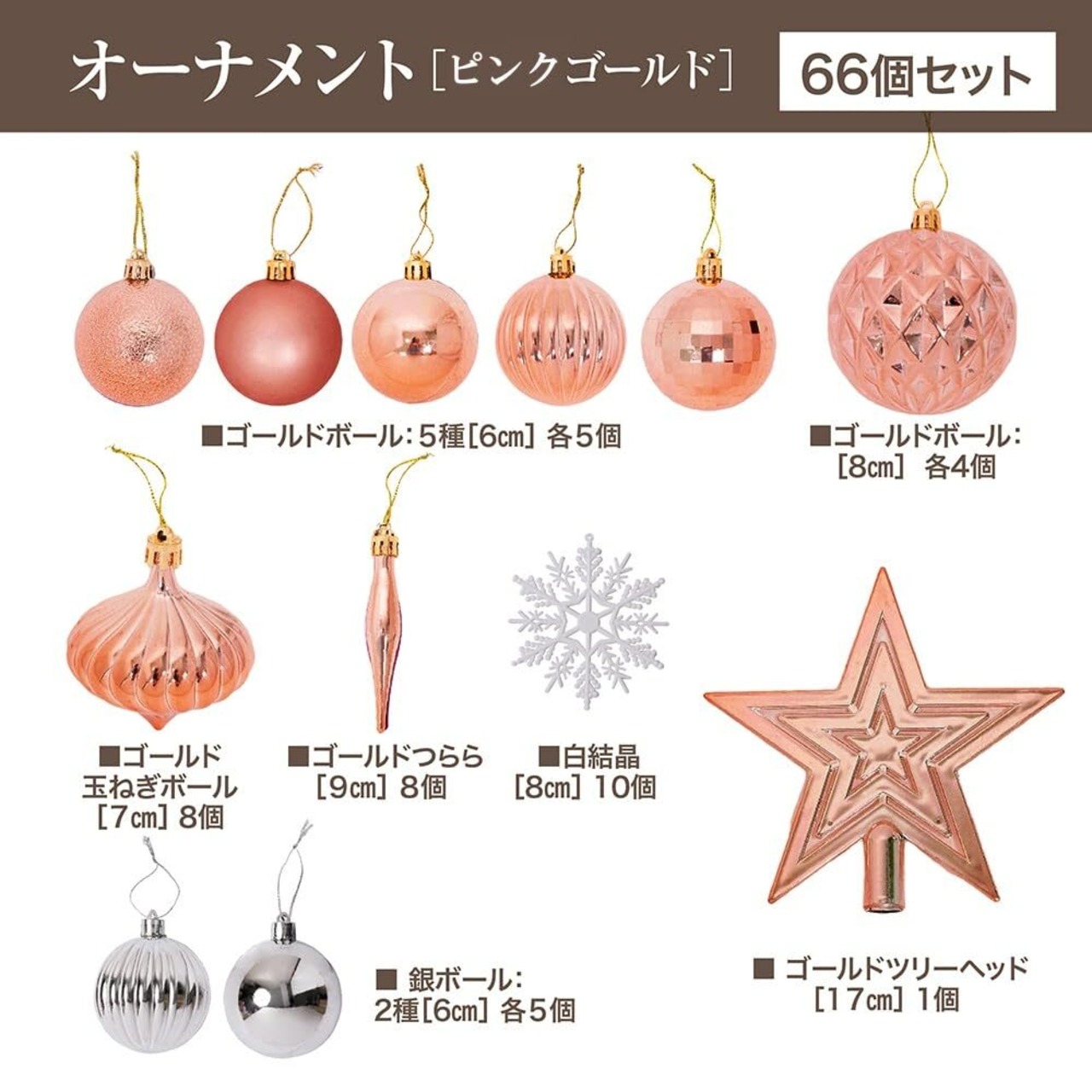 クリスマス オーナメント 66個セット 装飾 飾り 【ツリーを豪華に!大き目オーナメントセット】 ボール 6㎝ 8㎝ クリスマスオーナメント おしゃれ 飾り付け 豪華 大き目 (ピンクゴールド)
