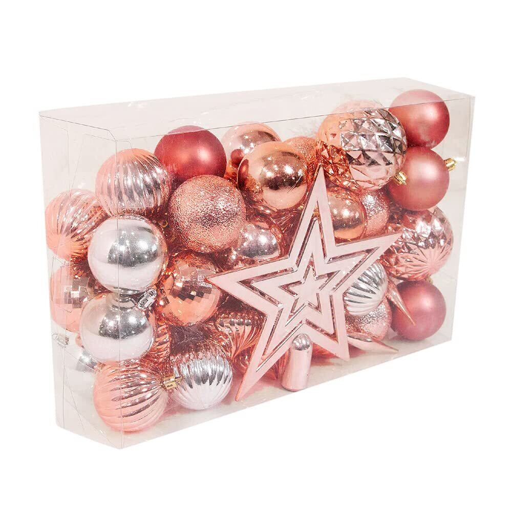 【人気商品】クリスマス オーナメント 66個セット 装飾 飾り 【ツリーを豪華に!大き目オーナメントセット】 ボール 6㎝ 8㎝ クリスマスオーナメント おしゃれ 飾り付け 豪華 大き目 (ピンクゴールド)