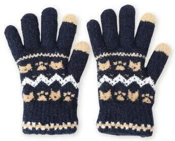 [GlovesDEPO] レディース やわらかニット手袋 5本指 日本製 タッチパネル対応 ねこモチーフ