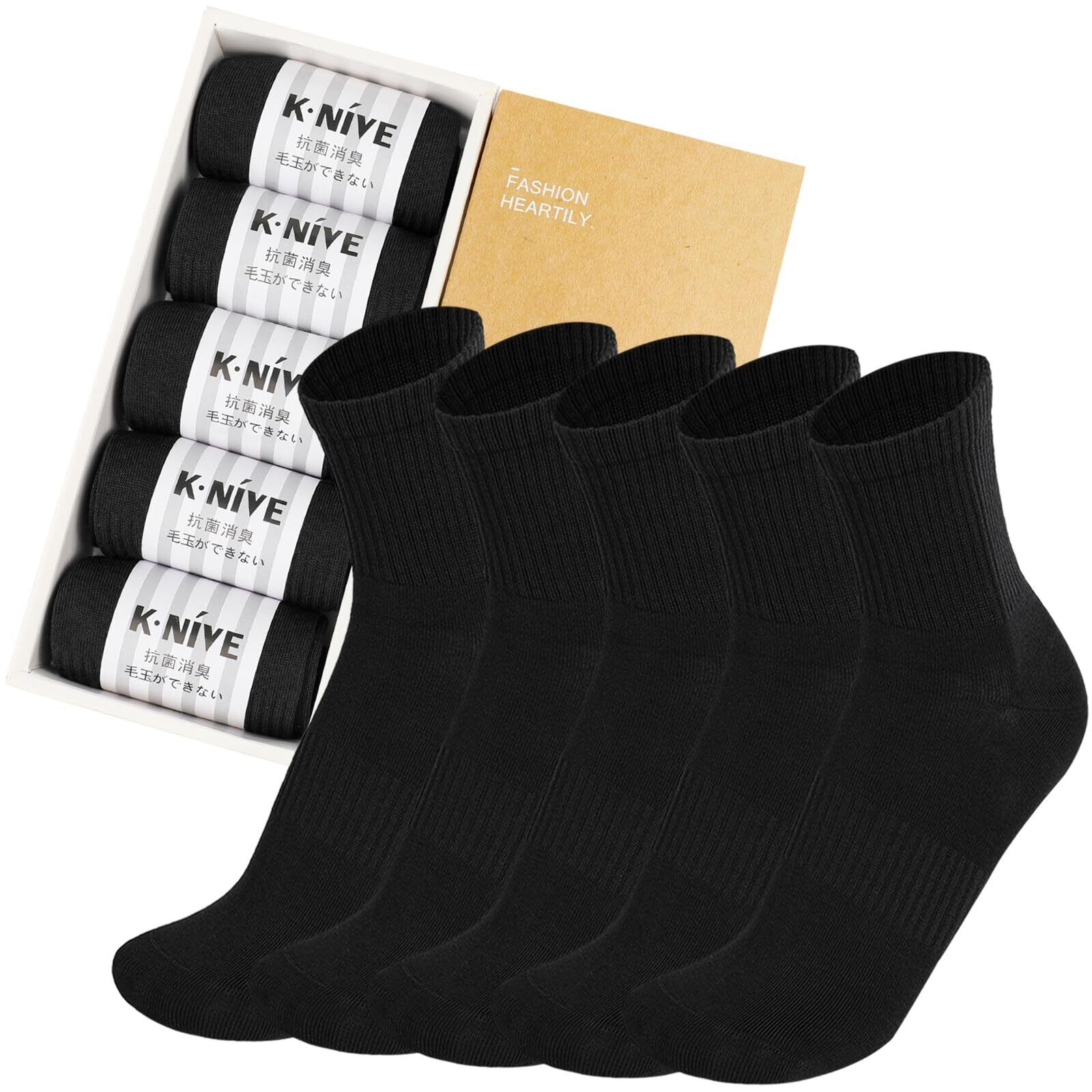 [K・NIVE] 靴下 メンズ ビジネスソックス 黒 破れにくい 抗菌消臭 蒸れない 毛玉になりにくい コーマ綿 無地 くつした 5足組セット 24.0~28.0cm