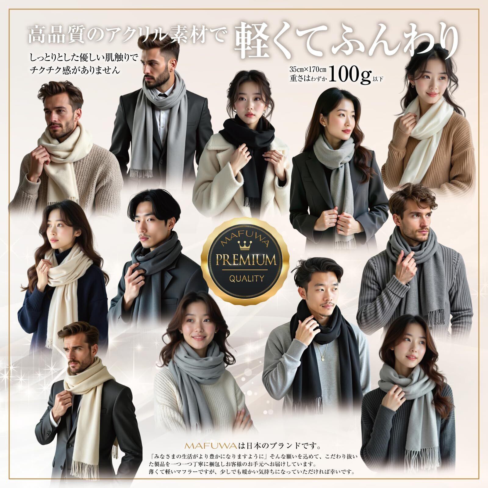 【数量限定】[MAFUWA] 心地よい巻感 ふんわり 軽い マフラー 男女兼用 カシミヤタッチ 暖かい 中判 (35cm×170cm/100g/収納袋付)