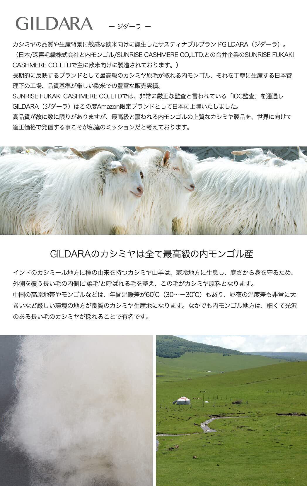 日本の毛織物の発展と共に120年の歴史を築いてきた老舗・深喜毛織株式会社(カシミヤのフカキ)の完全な監修の元誕生したカシミヤ専門ショップ「GILDARA」