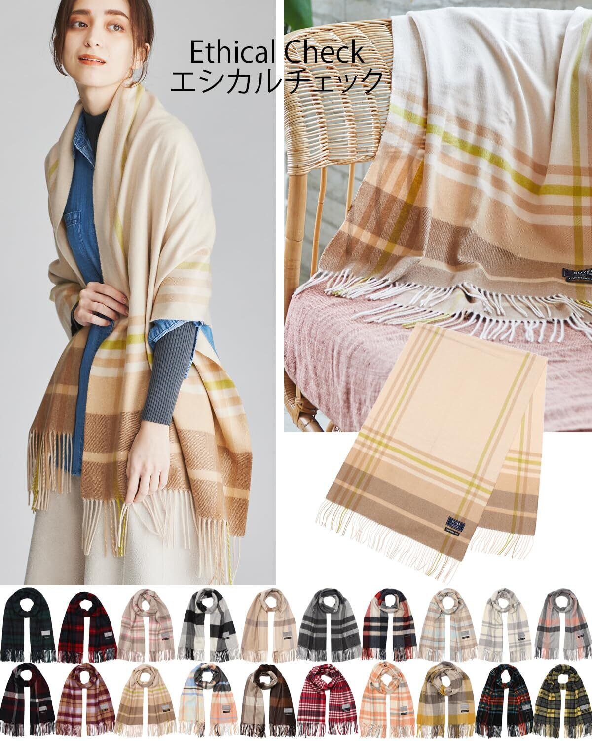 【在庫処分】[バイヤー] ピュア カシミヤ 100% チェック ストール 全19柄~【メンズ レディース】 カシミア チェック柄 厚手 大判 大判ストール CH60a