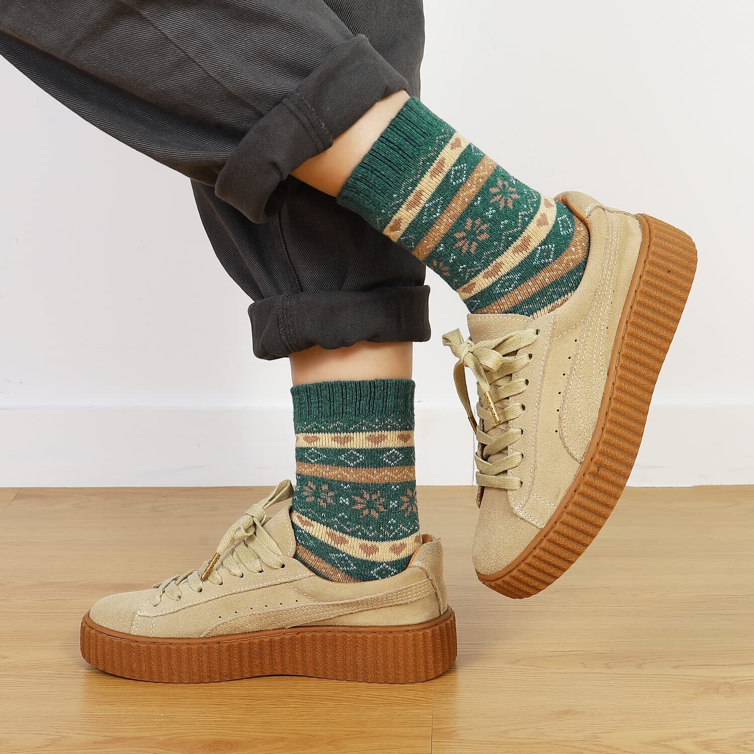 [DAMILY] 靴下 レディース 暖かい 冬 ソックス 厚手 防寒 くつした レディース 綿 かわいい 保温性 カラフル あったか 冬用靴下 5足セット 花柄 女性用 クルーソックス アウトドア 冷え取りくつ下 北欧 22-24.5㎝ カジュアルソックス