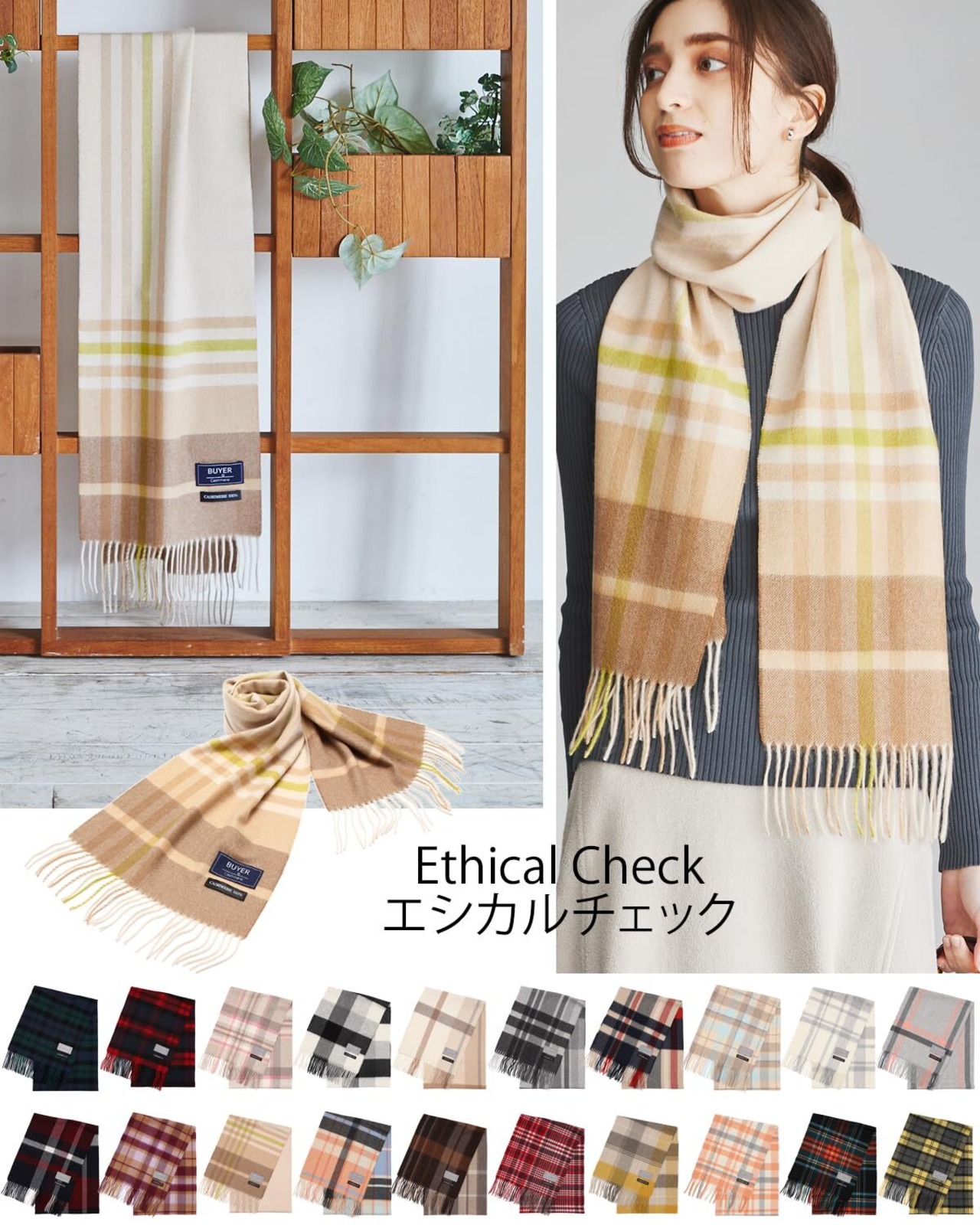 【お手入れ】BUYER の カシミヤ は 他と比べ 繊維が細いものを使用しておりますので マフラー ストール などの連続使用は避けて、こまめに カシミヤ 専用ブラシで 優しく撫でる事をおススメします。 洗濯について手洗いも可能ですが、信頼のおける クリーニング屋でのドライクリーニングをおススメします。 シーズンオフには、一度クリーニングに出した後に ジップ付きの袋に乾燥剤、防虫剤を一緒に入れ 保管する事をおススメします。