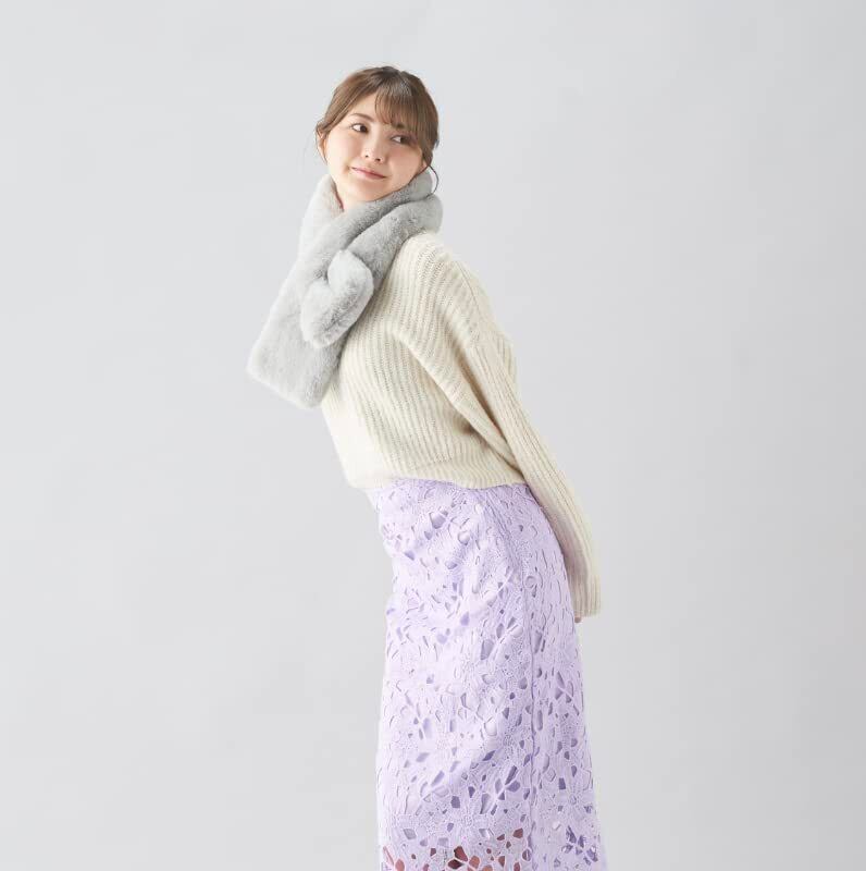 estaa(エスタ)のFUWA-MOCOマフラーです。まるで可愛い動物のような、ふわふわもこもこな手触りのマフラー。