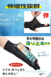 【フィット感抜群・滑り止めつき】伸縮性抜群の素材を採用して、人体工学に基づいたデザインで、フィット感を向上させました。UVカット手袋をつけても動きやすいです。手のひら部には滑り加工されていて、手袋と物の摩擦力がアップされたので、運転する時、ハンドルの制御力も高めて、自転車やオートバイのハンドルなどもしっかりホールドできます。