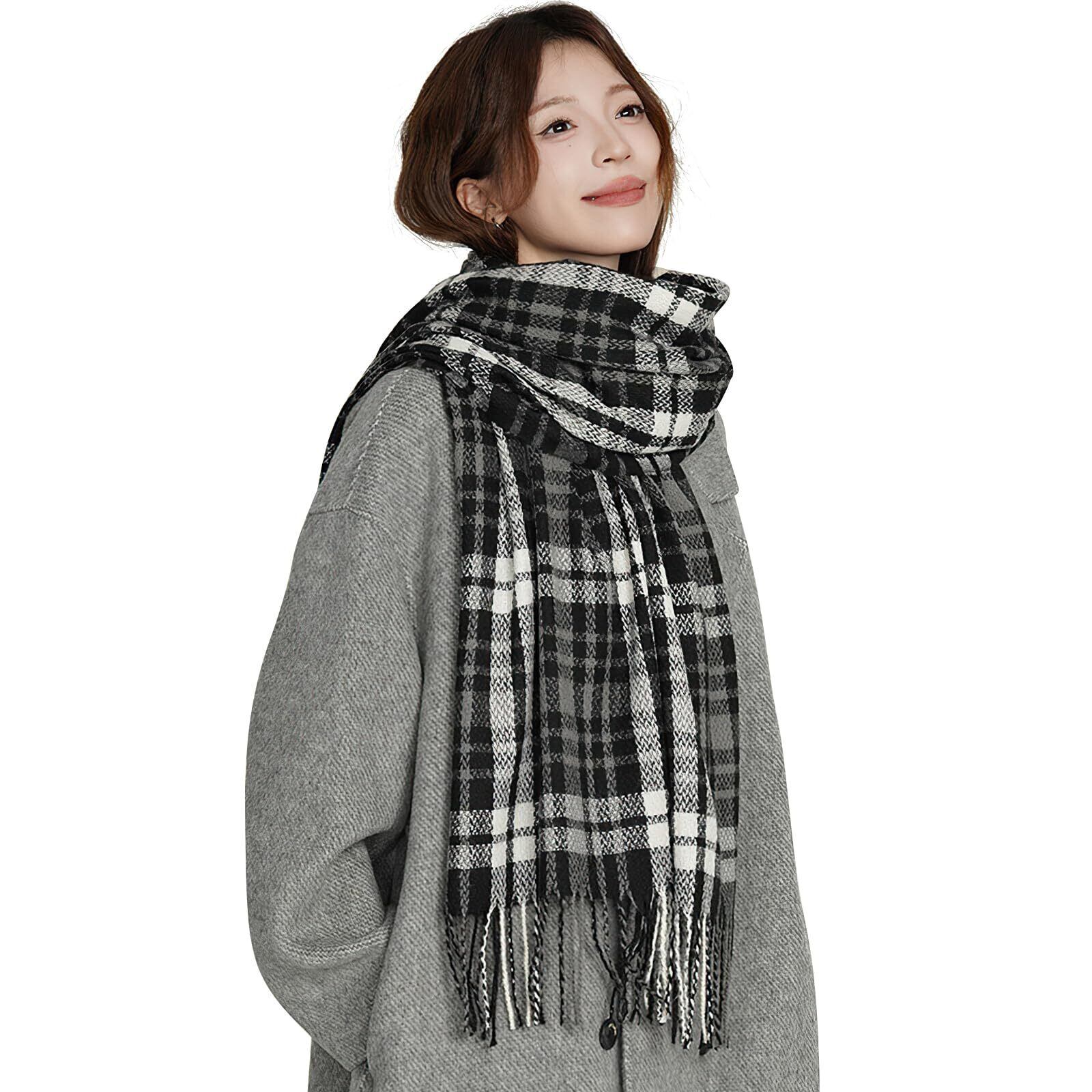 【2022最新】[Allanve] マフラー レディース 大判ストール 【高級な雰囲気・柔肌ふんわり・暖かい防風】 柔らかい チェック柄 ブランケット レディースマフラー ひざ掛け おしゃれ 厚手 無地 かわいい 秋冬 学生 ギフト クリスマスプレゼント
