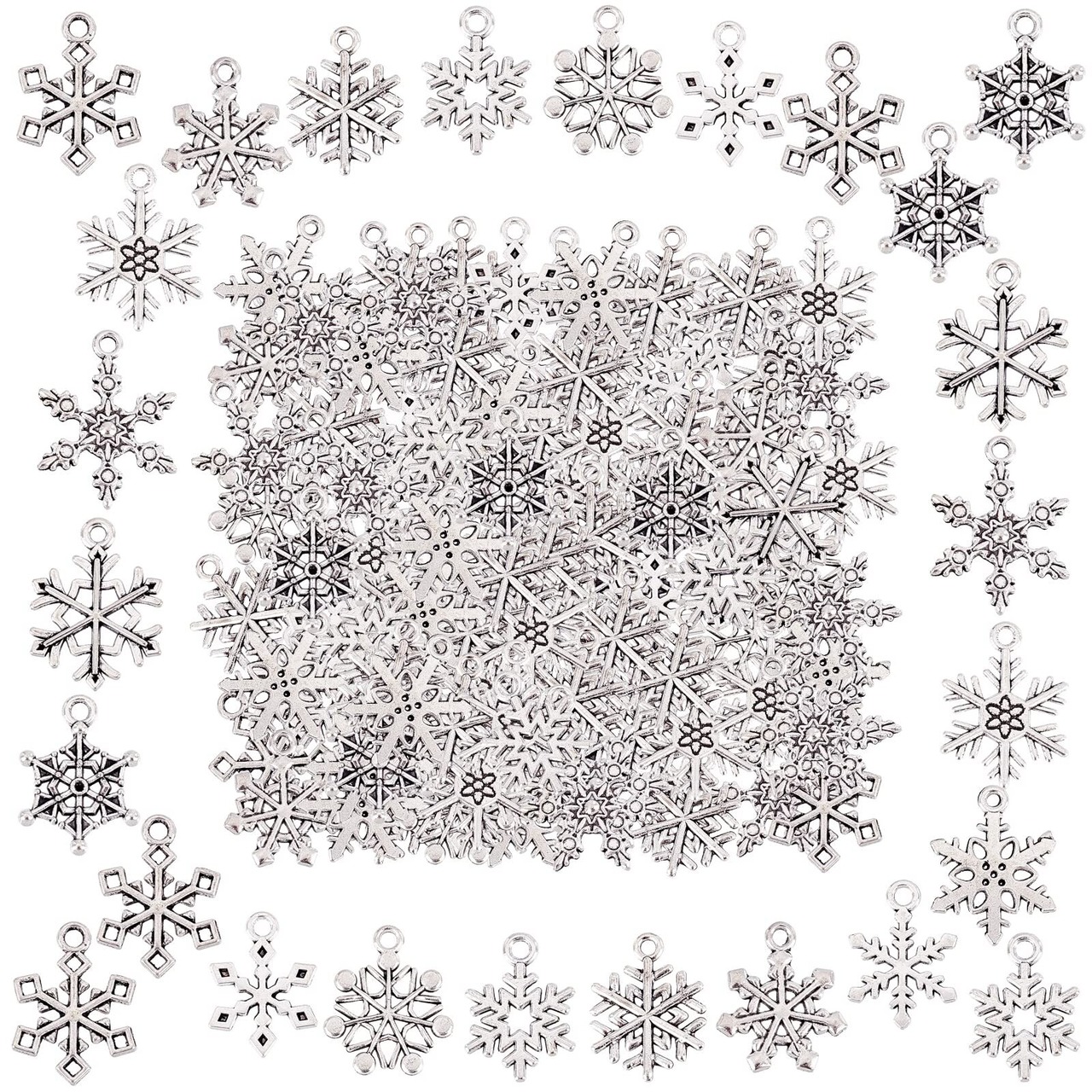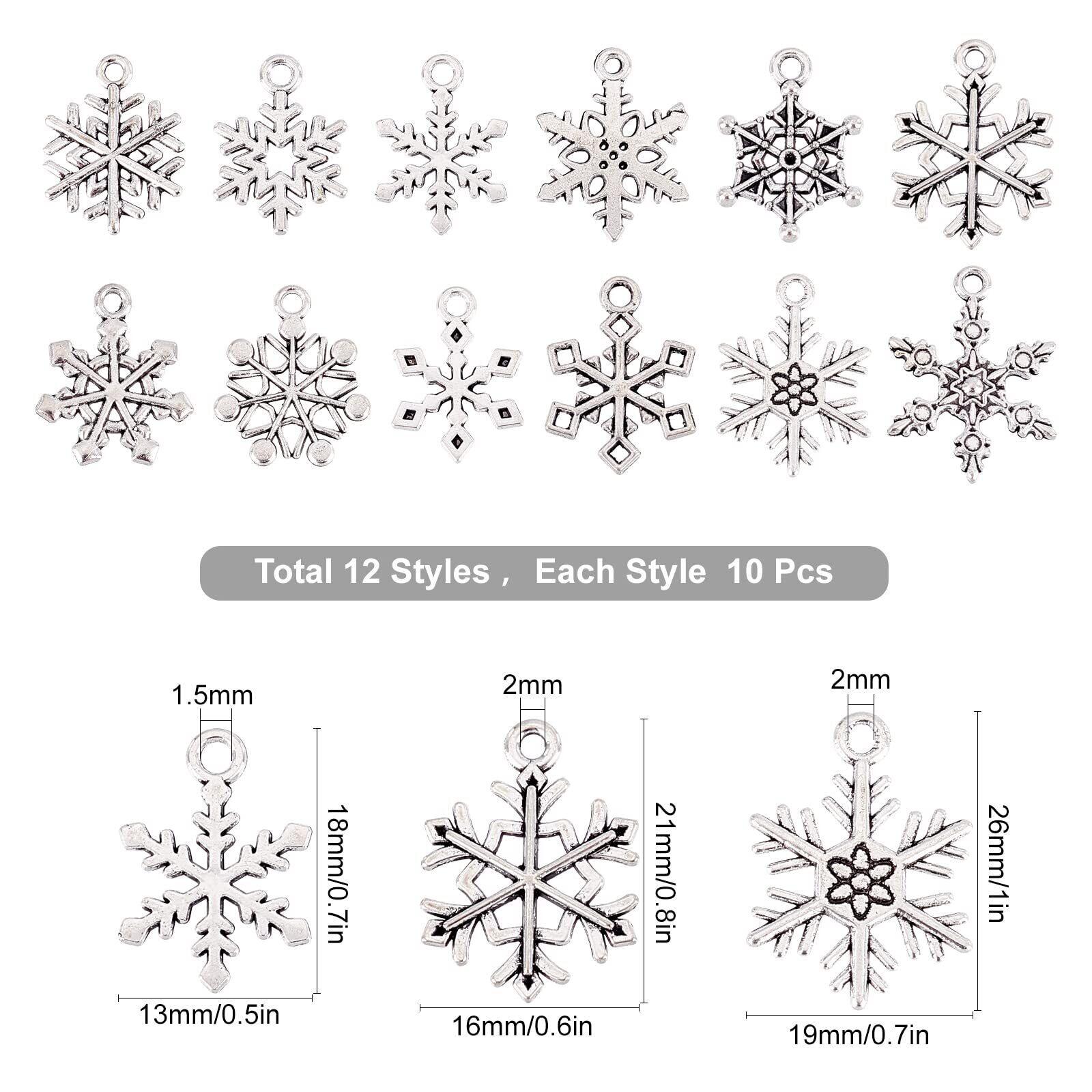 数量: DIY ジュエリー作成のニーズを満たす合計 120 個が入手できます。 各スタイル10個, 日常の使用と共有の需要をサポートします. 冬のホームパーティーに最適, 学校のクリスマス飾りやその他の大量の雪の結晶アクセサリーの集まり. 愛を伝える新年の贈り物にも最適です.