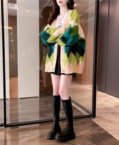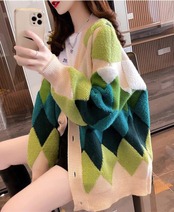【2022最新】カーディガン レディース ニット アウター 羽織り ボア トップス アーガイル Vネック 秋冬 フリーサイズ