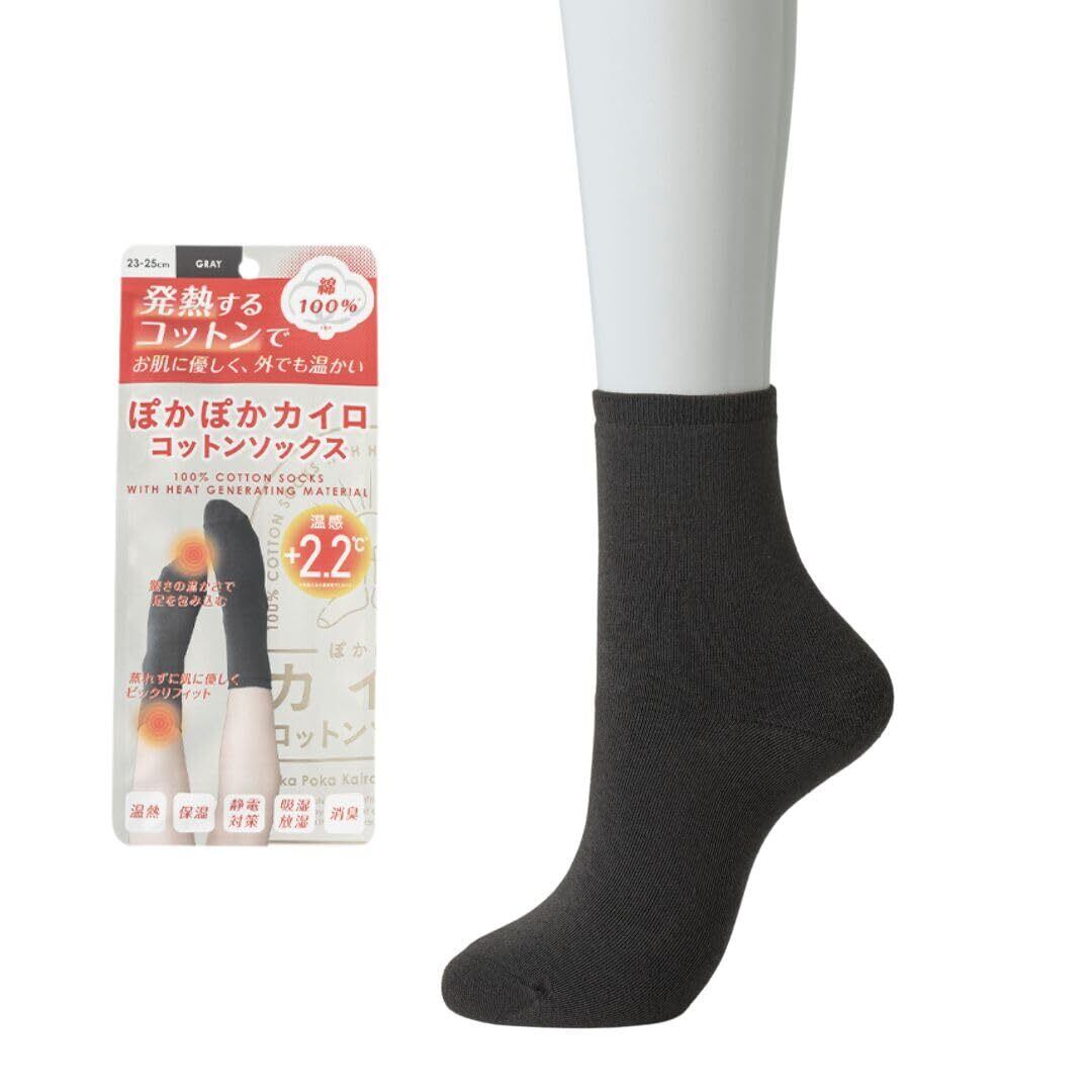 [ぽかぽかカイロ] コットンソックス 23~25cm レディース 厚手靴下 冷え取り靴下 綿100% 発熱素材 温感+2.2℃ 静電気防止 肌にやさしい 冬用 暖かい 消臭