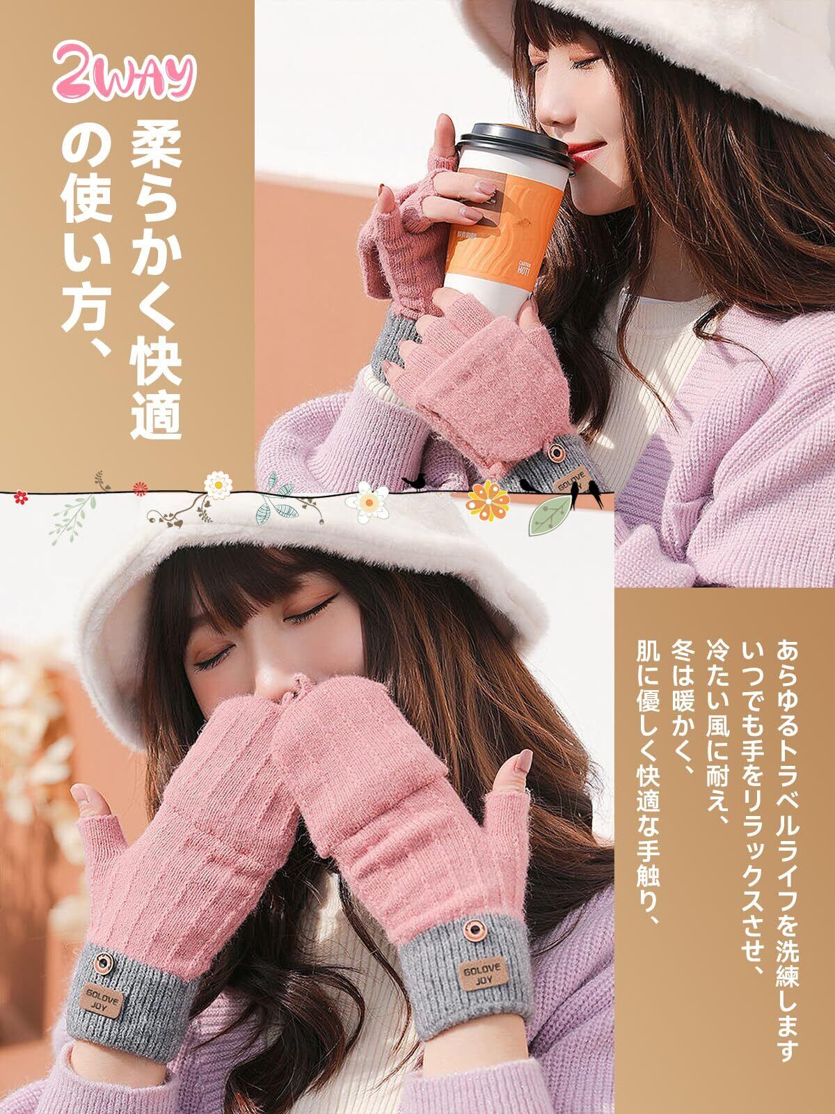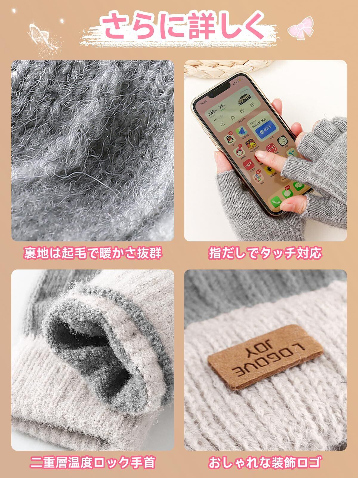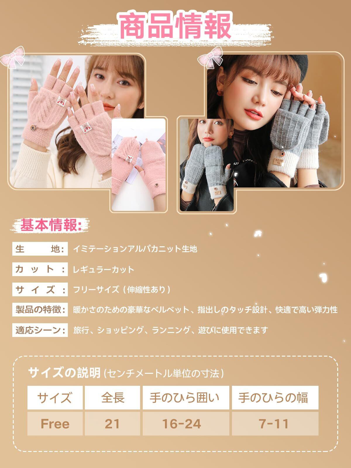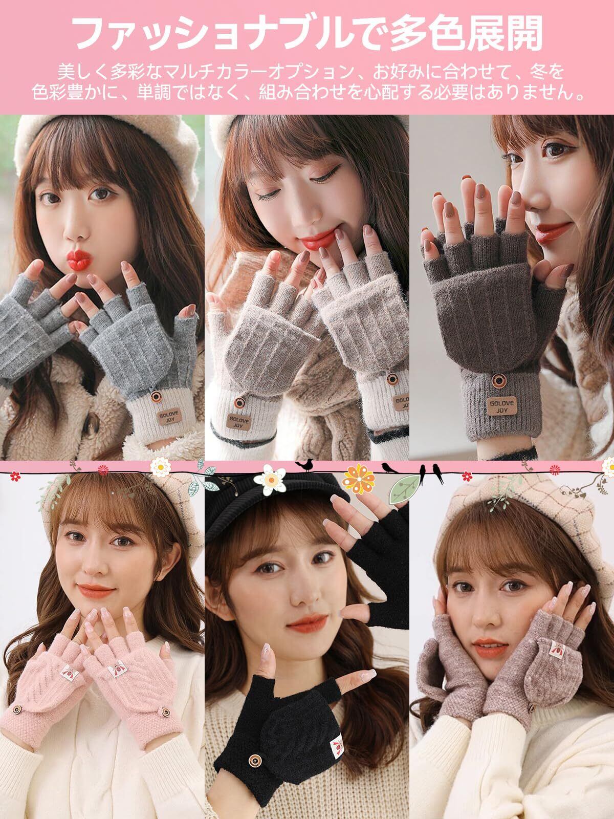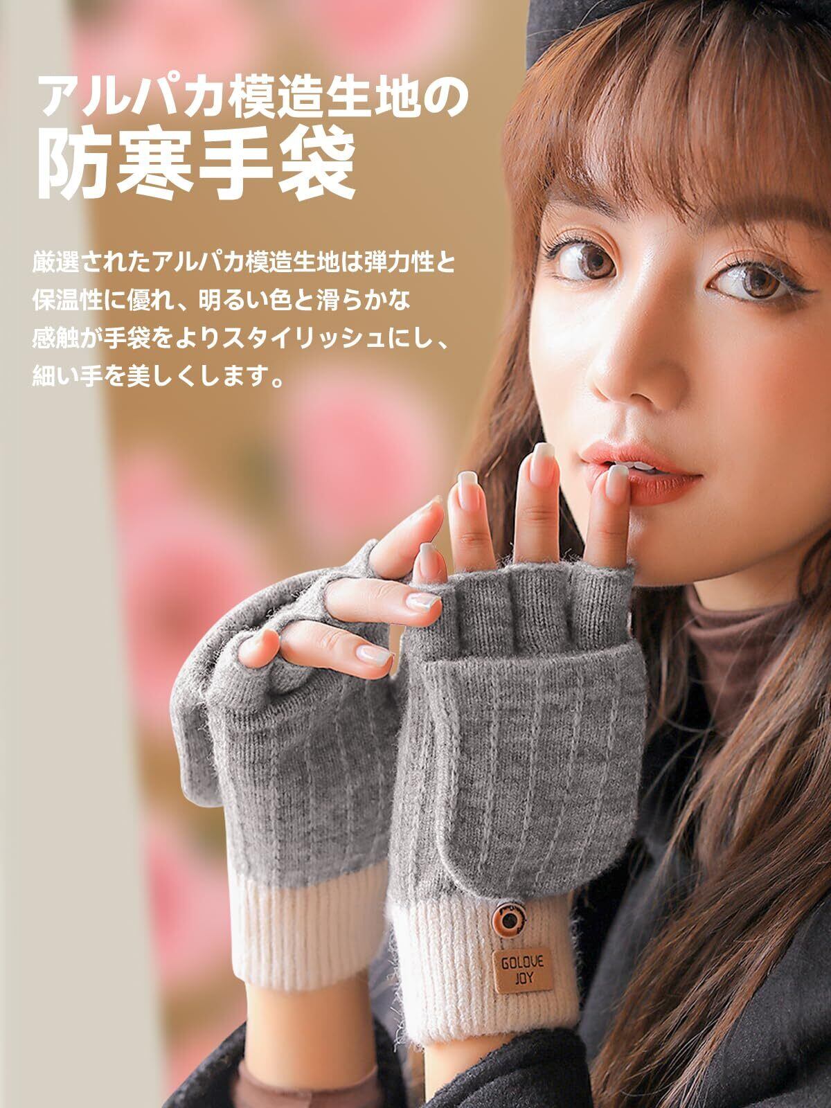 [MOONMN] レディース手袋 指なし 手袋 スマホ対応 半指手袋 レディース 指切り レディース手袋 ゆびあき レディースグローブ 指だし ミトンカバー付き ニット製 通勤 通学 可愛い ふんわり 防寒 ポカポカ プレゼント2WAY