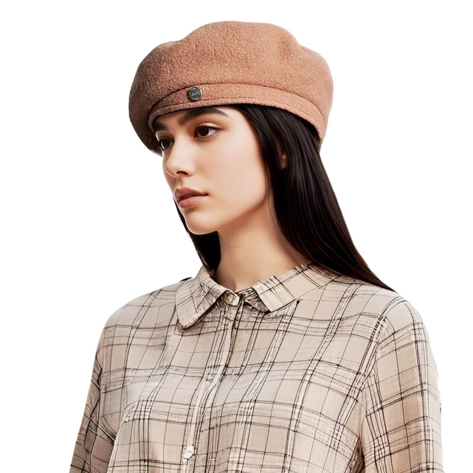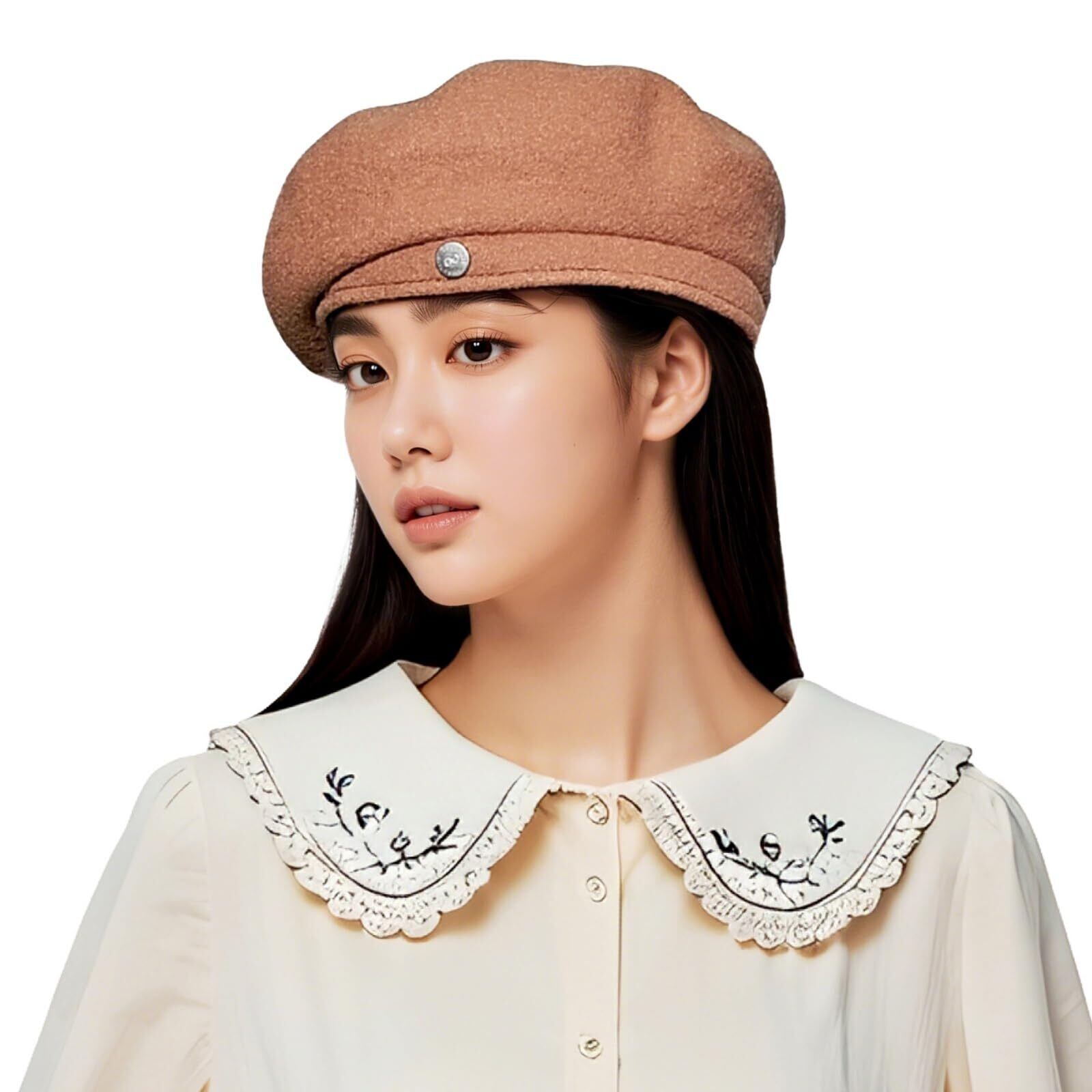 このベレー帽は、表面に織り込まれた精巧なパターンが目を引く上質素材。ふんわりとした保温性と心地よさが魅力で、秋冬の寒さを和らげてくれます。銀色の円形ボタンが前面に装飾され、女性らしさとエレガンスをアップ。