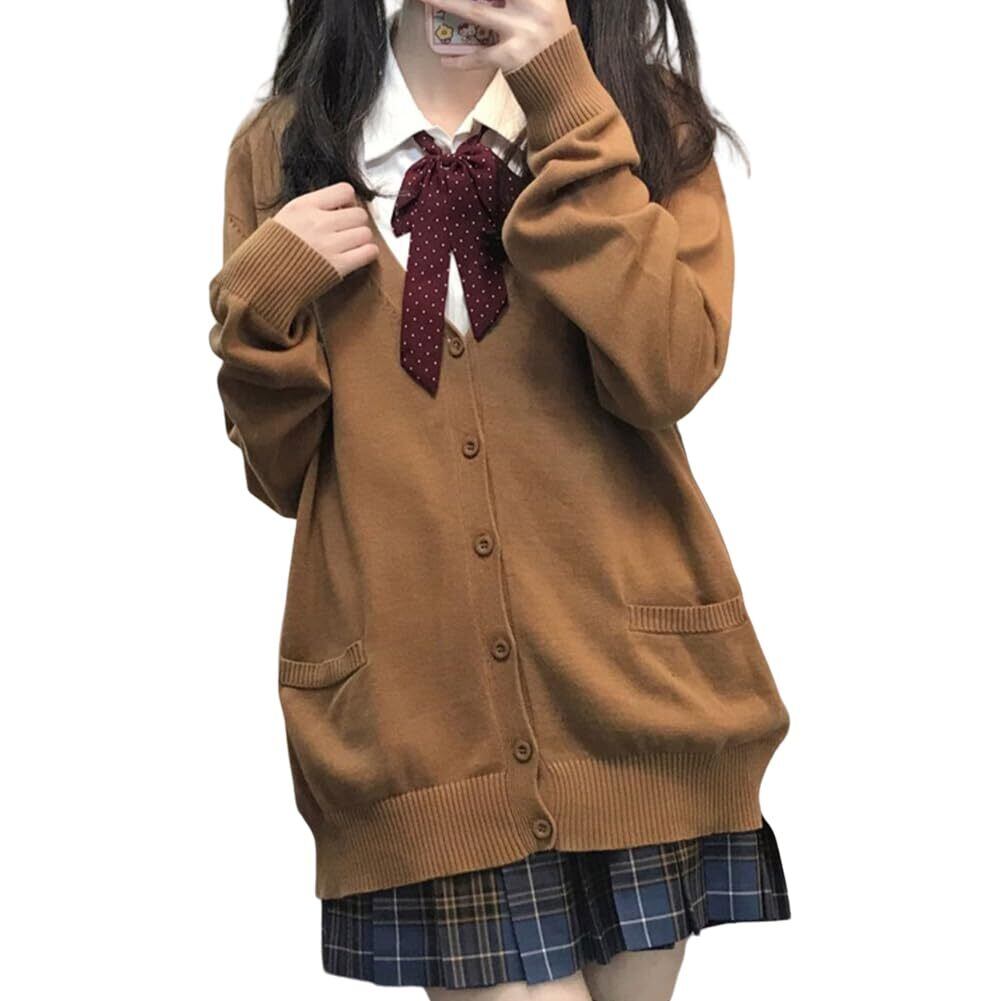 【人気商品】[HOTIAN] スクールカーディガン 女子 制服 Vネック スクールセーター 高校生 無地 ニットカーディガン 春 夏 秋 冬 通年 通学 通勤 春秋冬