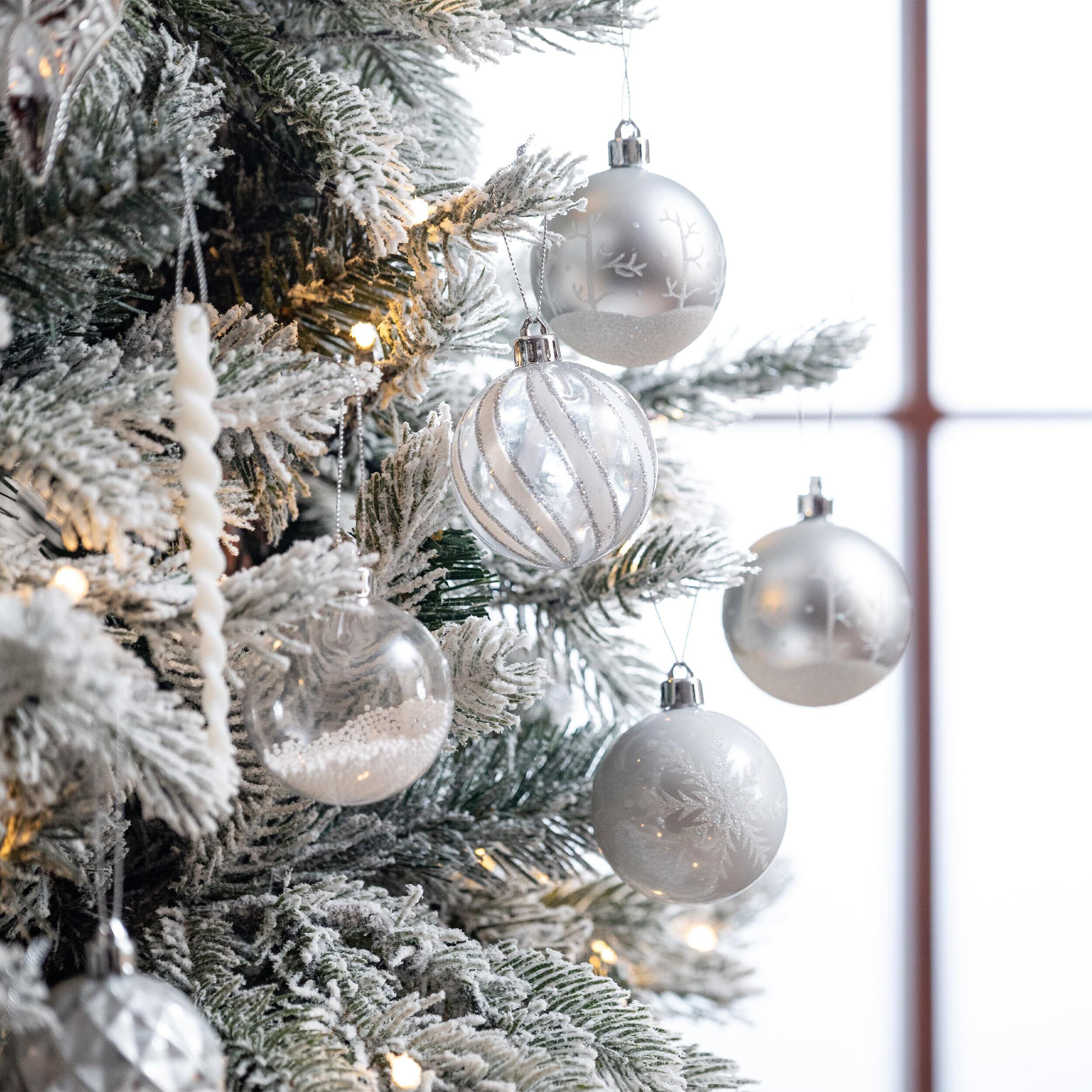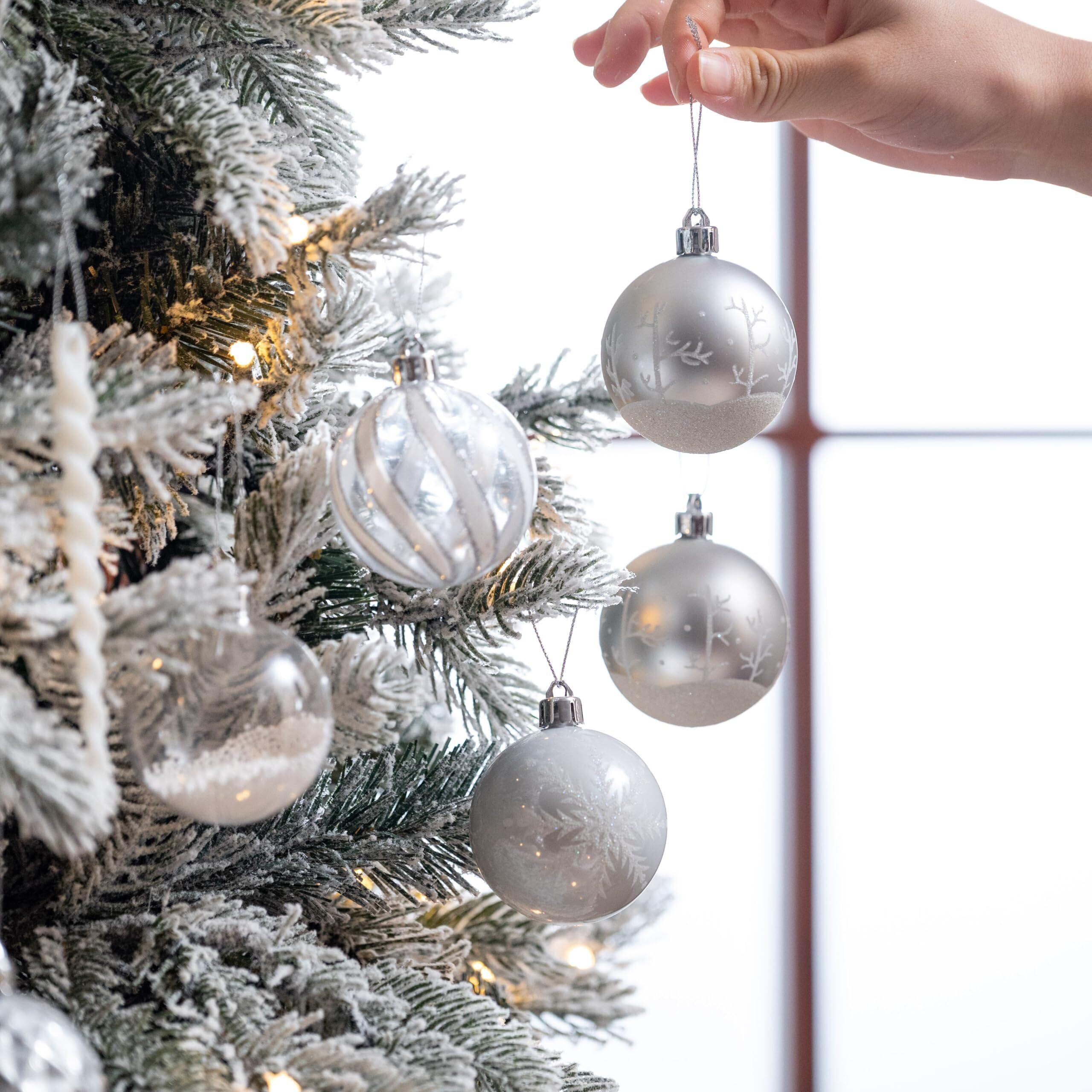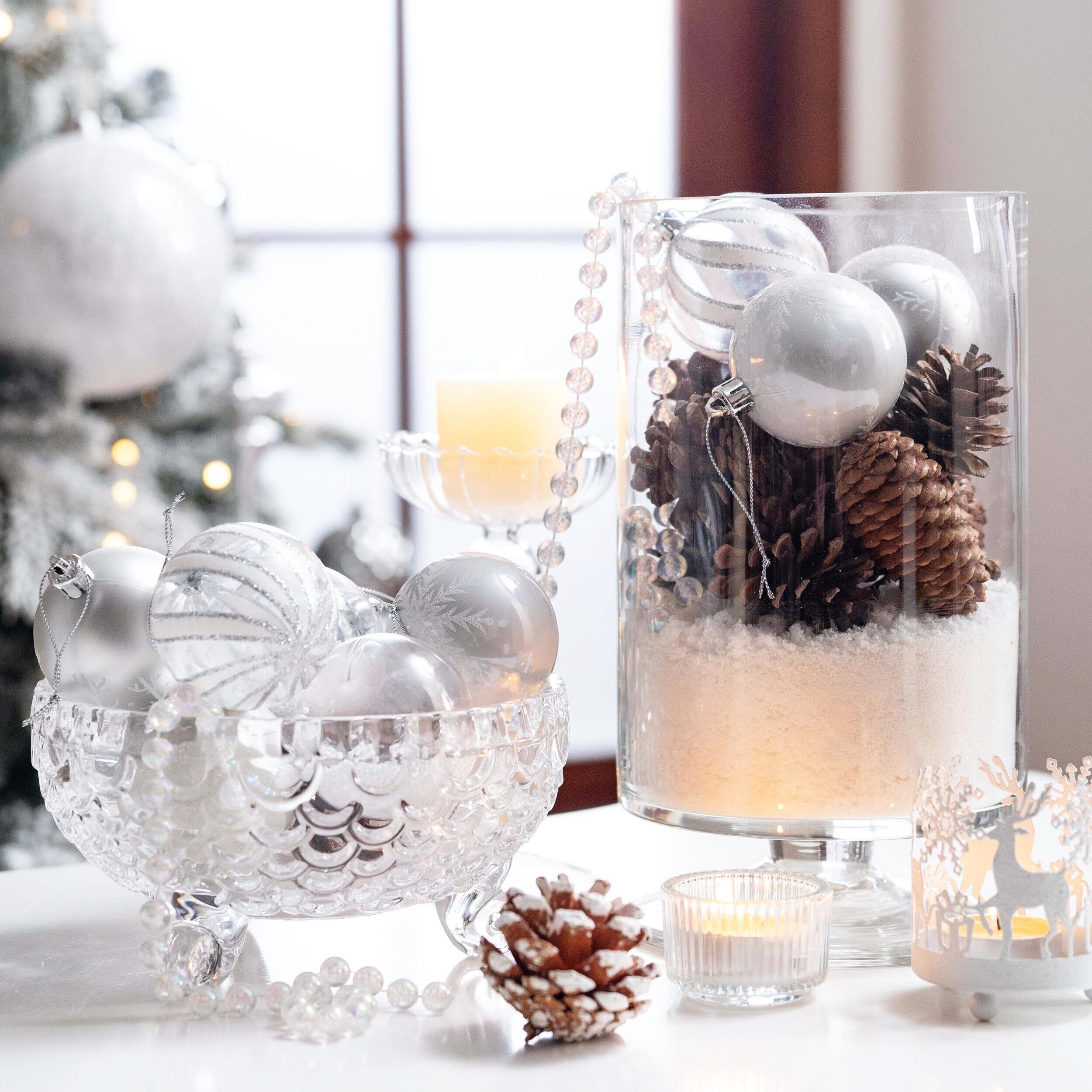 【豊富な選択】このボールセットは銀白のテーマで、さまざまな柄があり、セットの中の各色の製品はあなたの家庭装飾に豊富な選択を提供します。