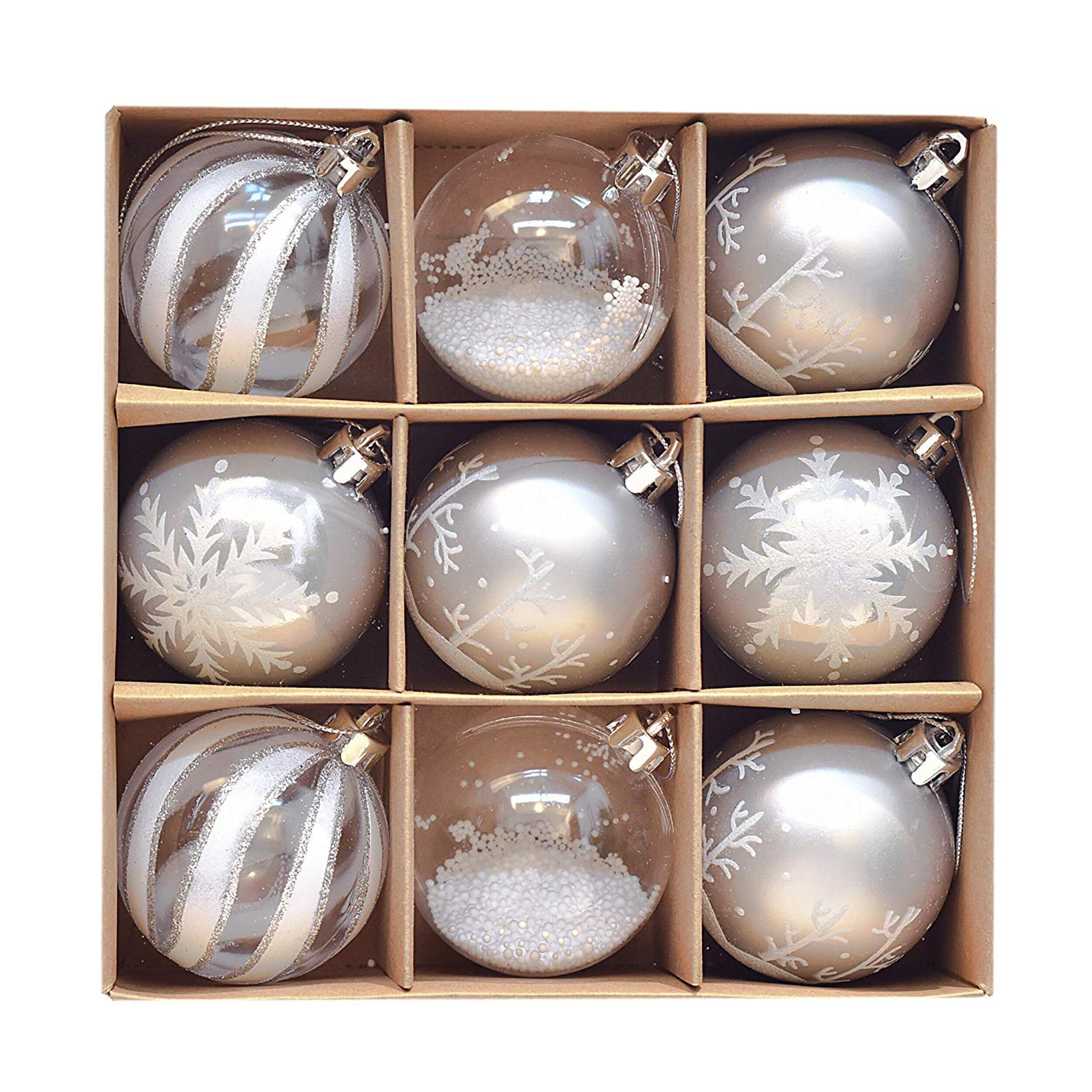 【パッケージとサイズ】クリスマスオーナメントセットには、銀白のクリスマスボール9個が含まれています。各ボールはシームレス接続を採用し、洗練された外観を作り出しています。ボックスには高品質のエコボール箱を採用し、贅沢感を加えます。