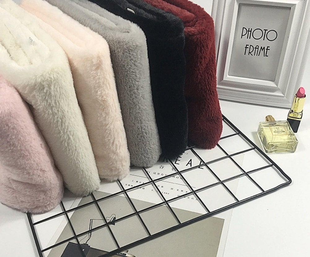 フォーマルシーンにもカジュアルスタイルにも合わせやすく、色違いでもっていたいお品。ふわふわもこもこの気持ち良い手触りが魅力です。