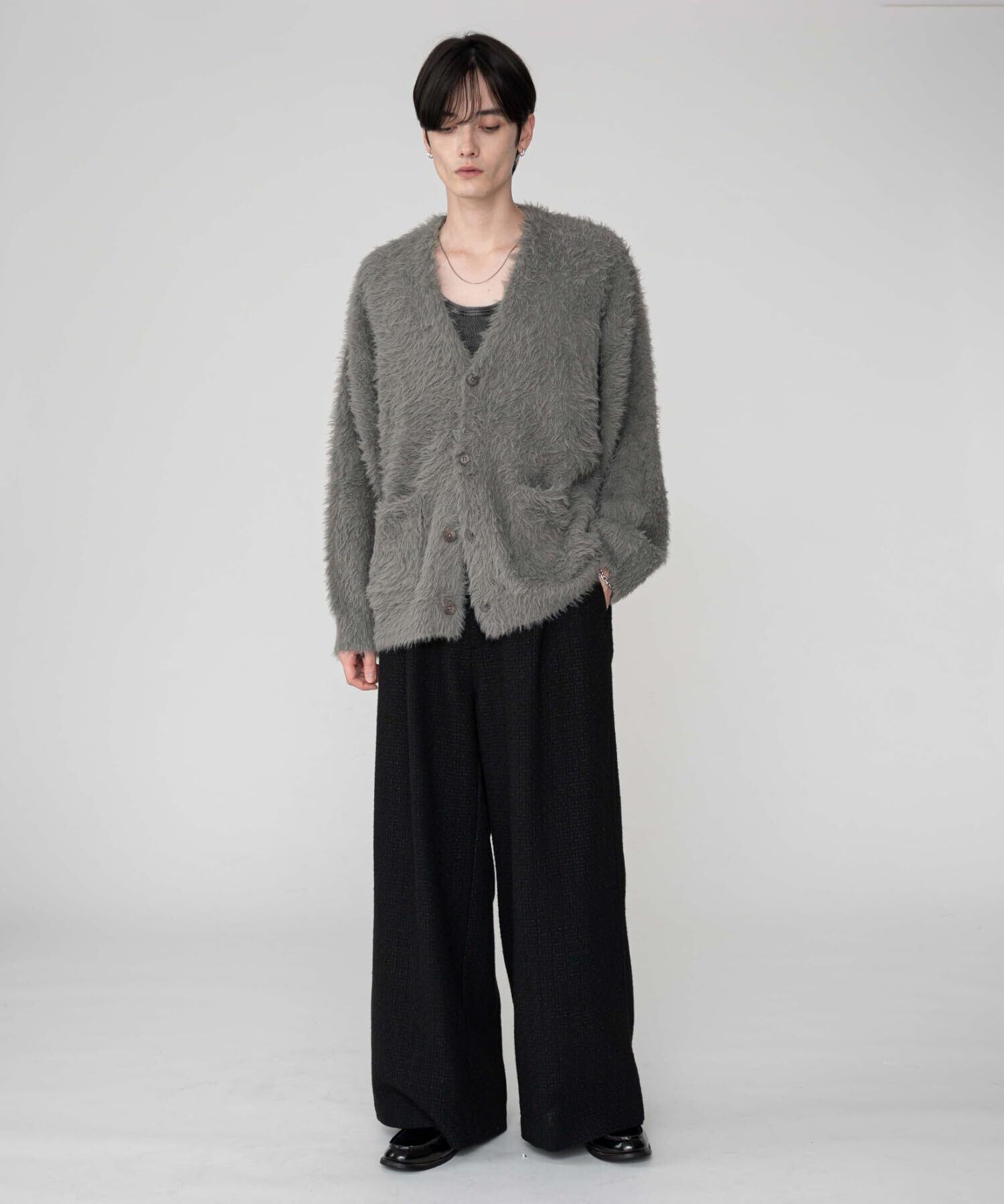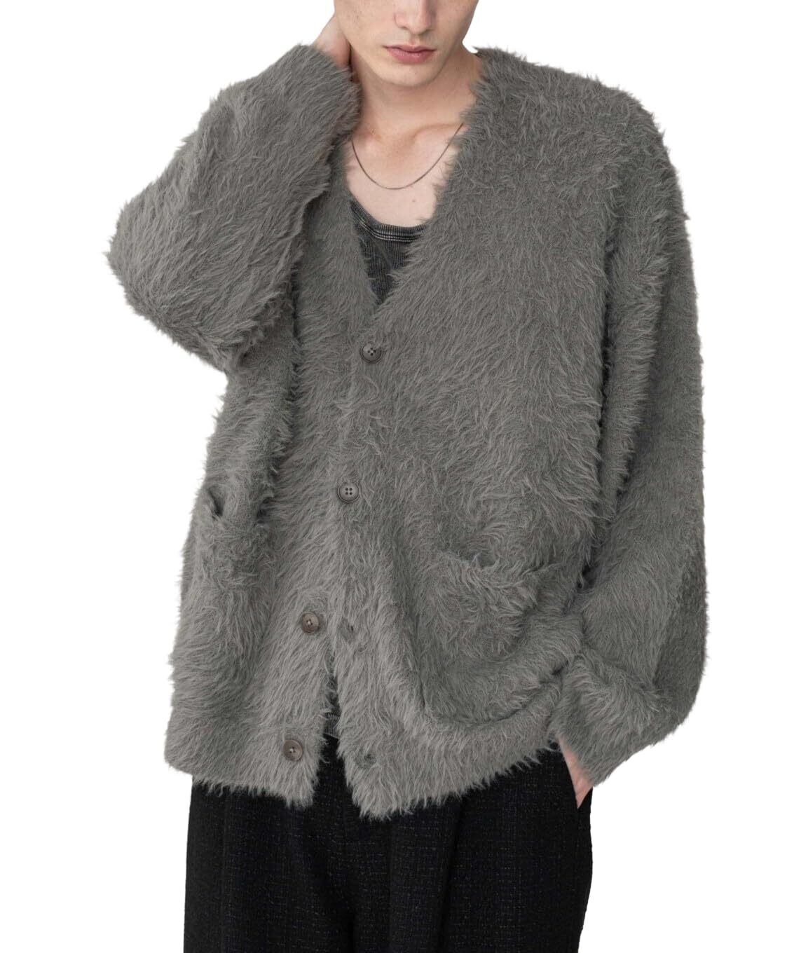 【在庫セール】[ウィゴー] 男女兼用 フェザー ニット カーディガン ゆったり アウター 無地 韓国 カジュアル 服 秋服 冬服 ギフト メンズ