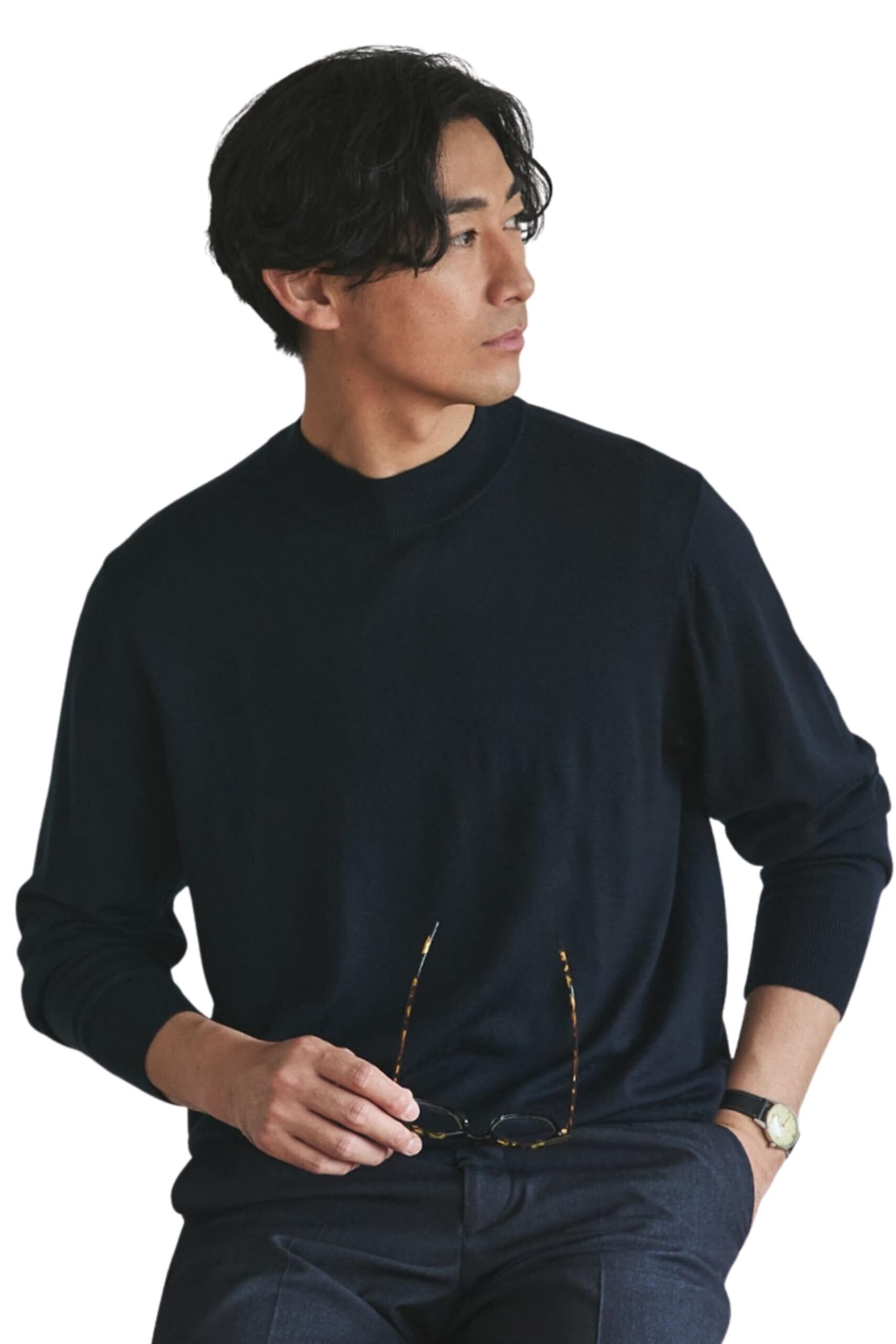 ORIHICAのビジカジモックネックニット