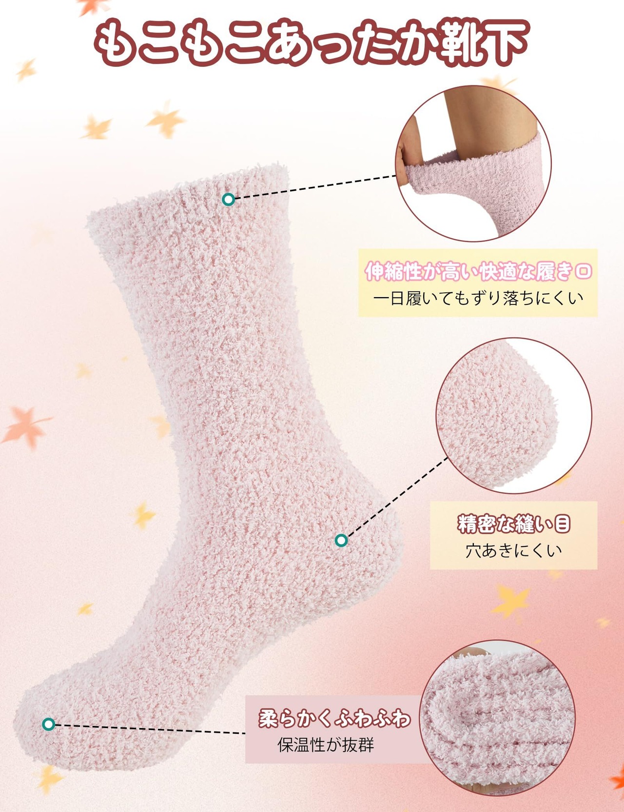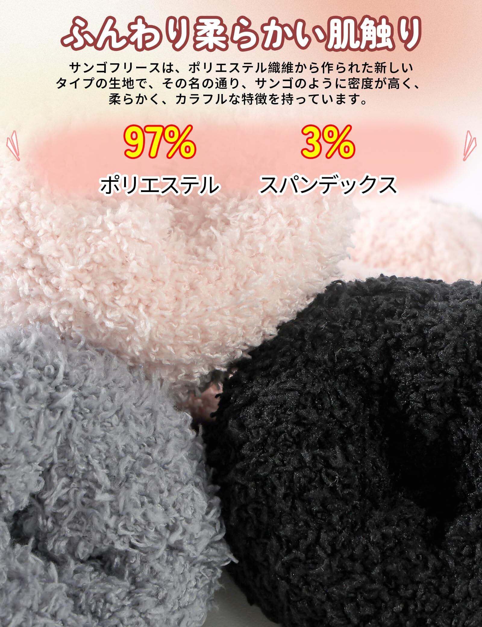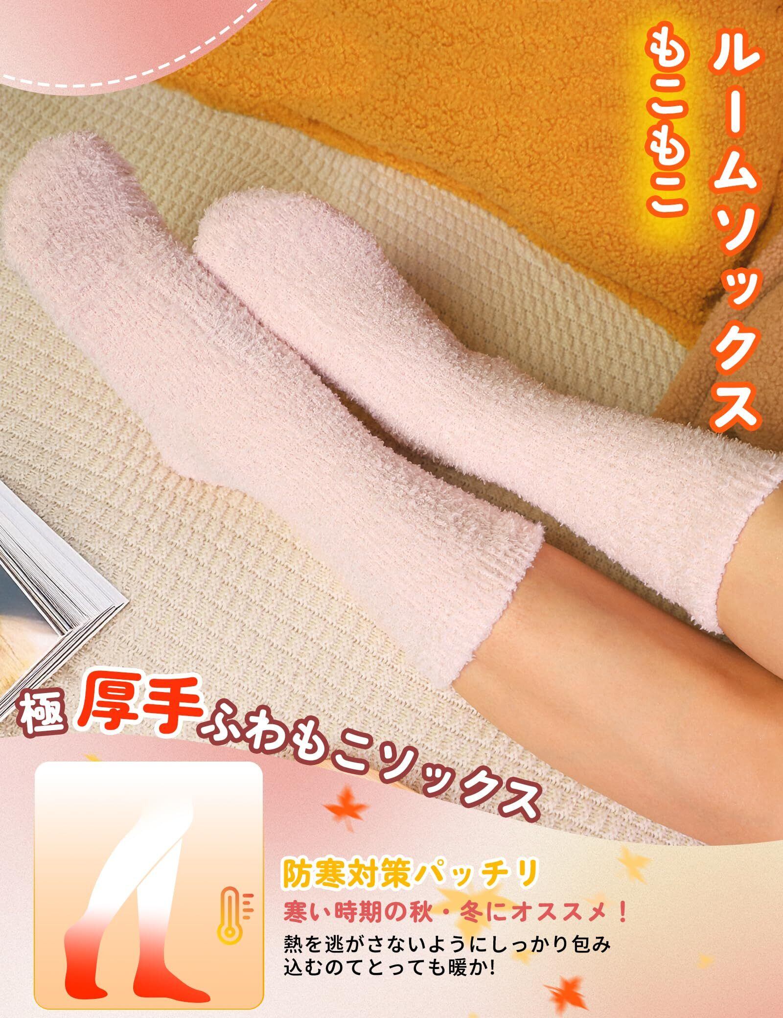 【心地よく柔らかいふわふわソックス】もこもこ柔らかい心地良い肌触りで足を優しく包み込んでくれ、履いて歩くとまるで雲の上を踏んでいるような感じがします。ゆったりした履き口で締め付け感がなく、長時間履いても快適な可愛い厚手 レディース ソックスです。足の形状に合わせて確り縫製され、着心地が良いと同時に靴下の耐久性も確保されています。