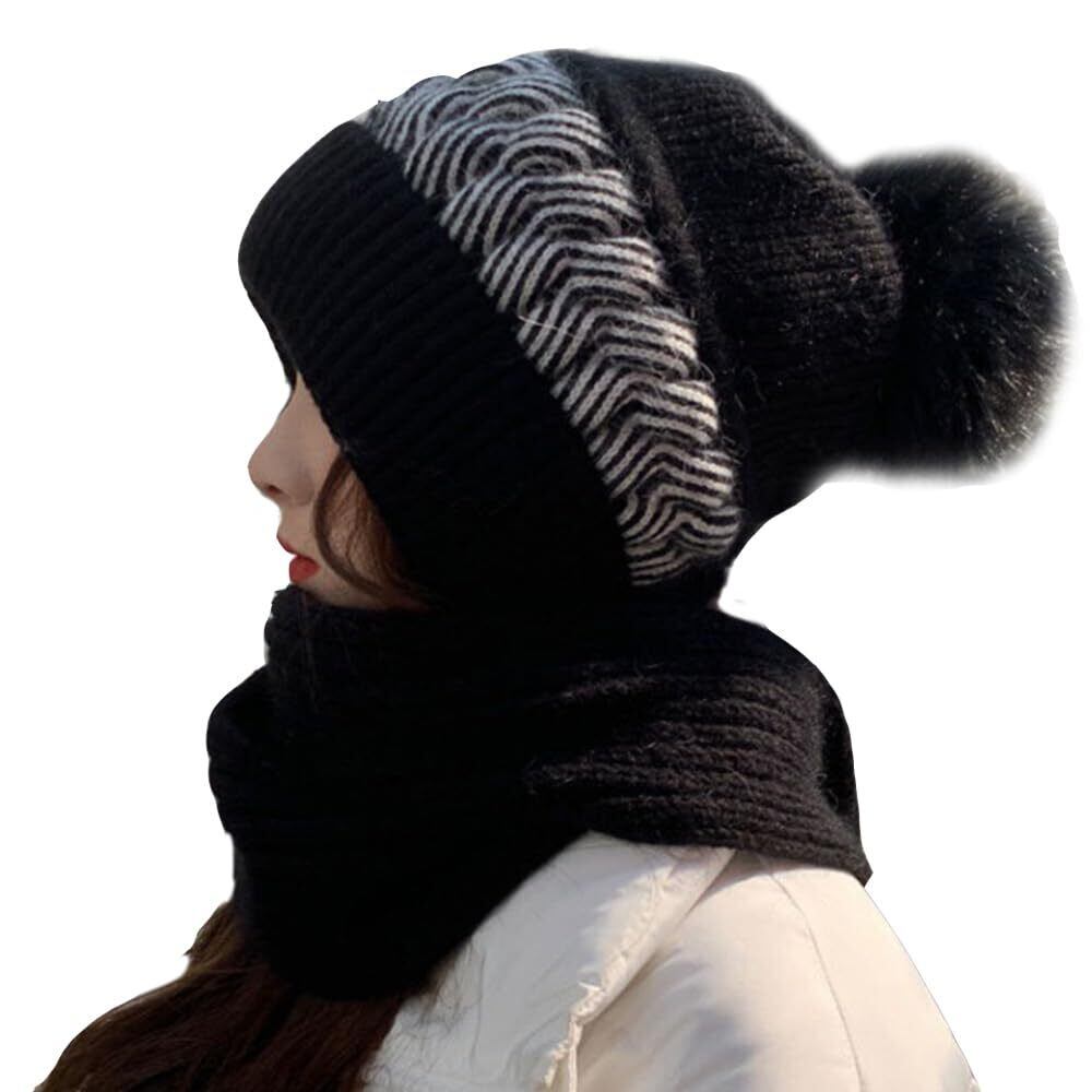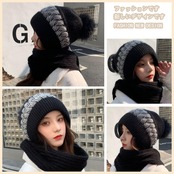[MIDIRO] マフラー帽です レディース ニット帽 秋冬 防寒防風 二重保温です 柔らかい 伸縮性 マフラーです 締め付け感ゼロ 小顔効果 通気 帽子 ニット帽子 ニットキャップ 無地 軽量