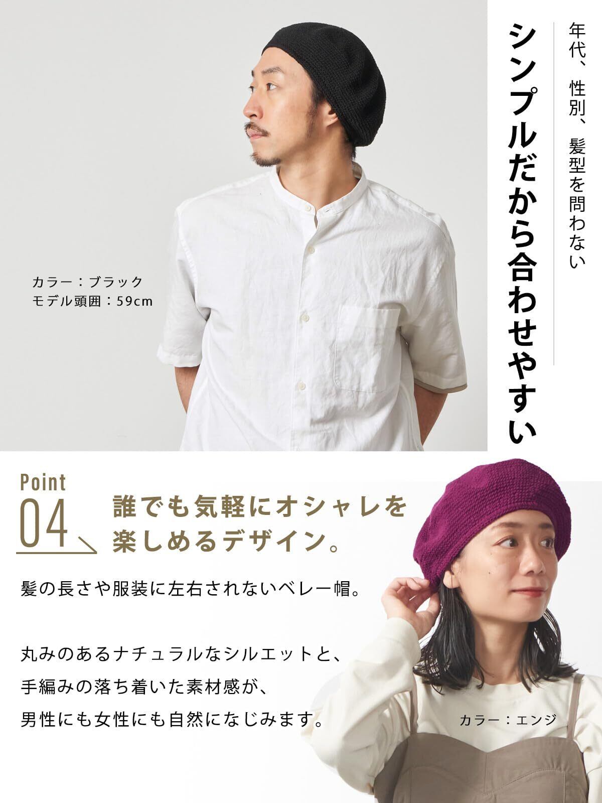 【手編みの良さを実感】職人が心を込めて1点1点丁寧に編んだベレー帽。かぶり口にゴムが入っており、大きいサイズの帽子をお探しの方でもフィットして着用していただけます。手編みで仕上げている為サイズや風合いが異なりますが、ハンドメイドの温かみをお楽しみください。